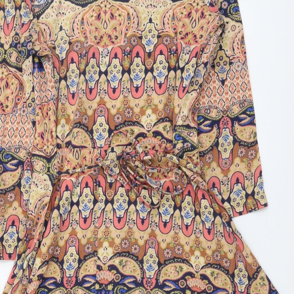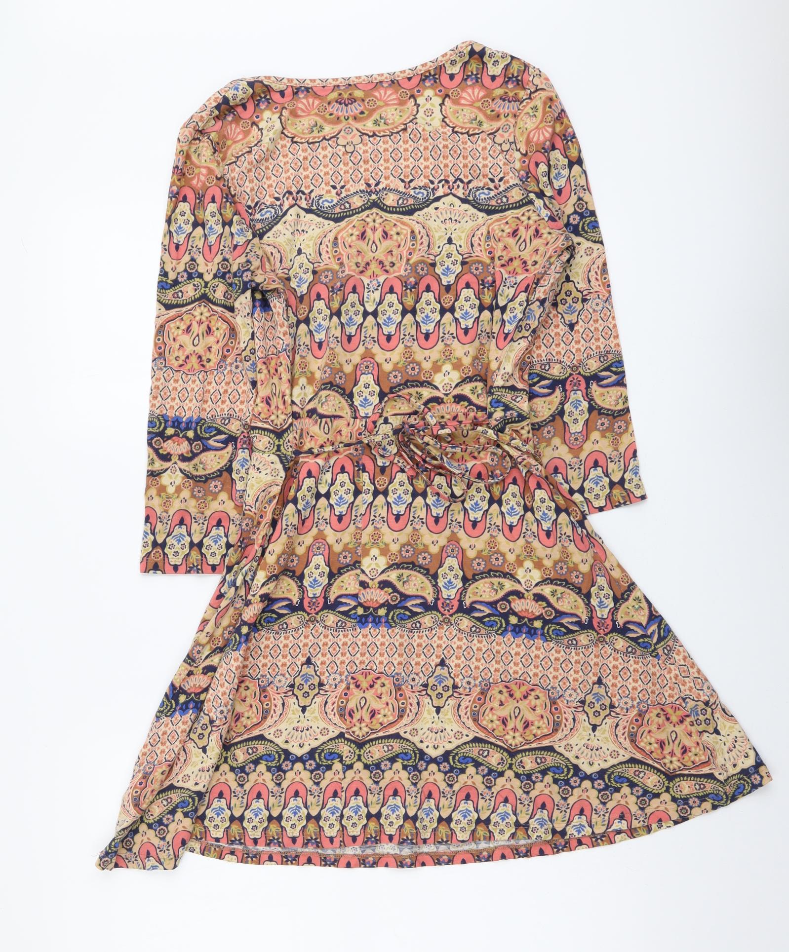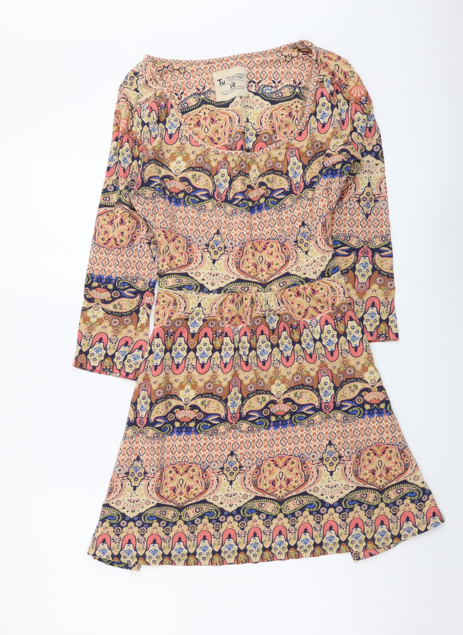 TU Womens Beige Geometric Cotton A-Line Size 10 Scoop Neck Pullover