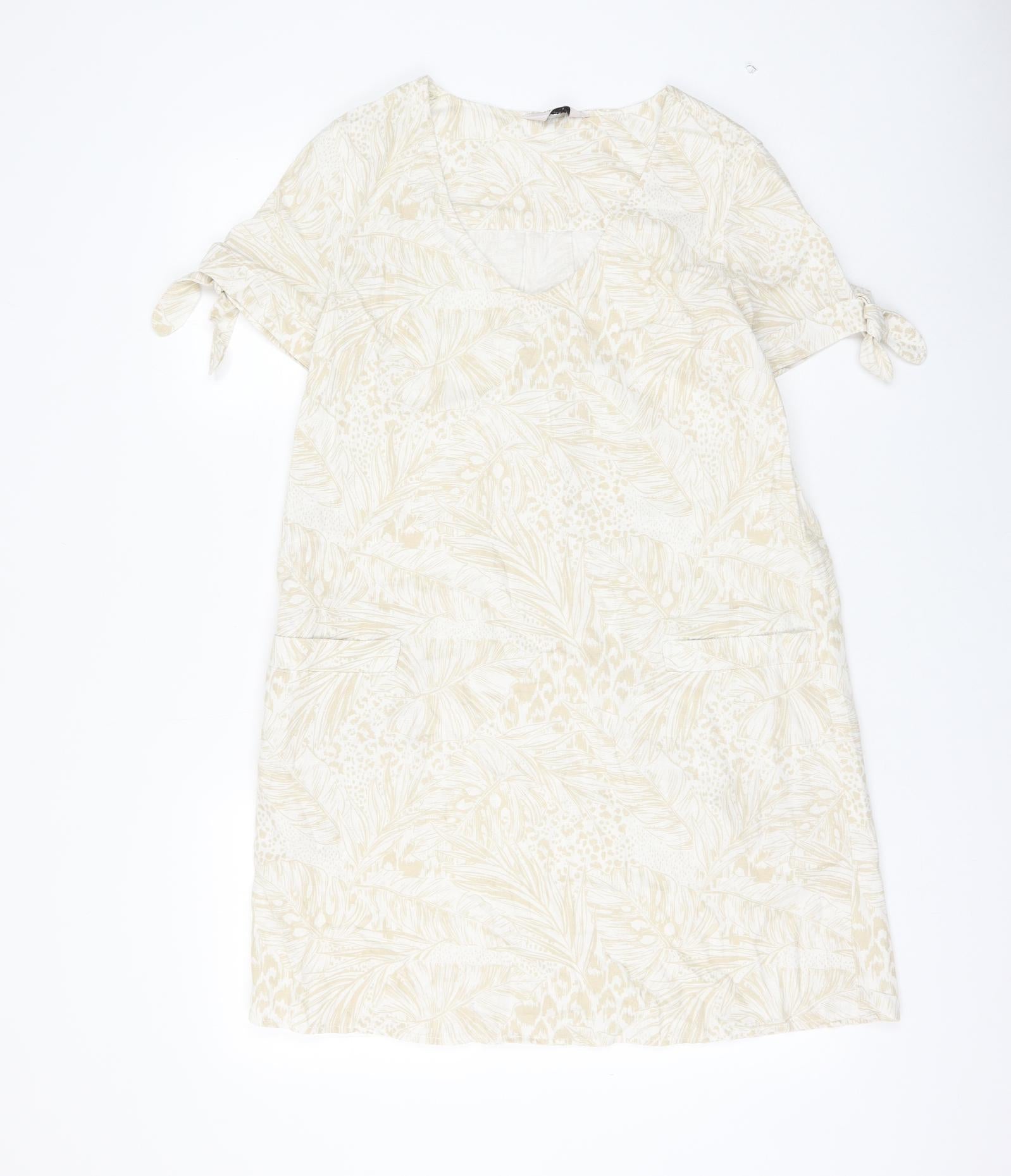 TU Womens Beige Geometric Linen Shift Size 8 V-Neck Pullover