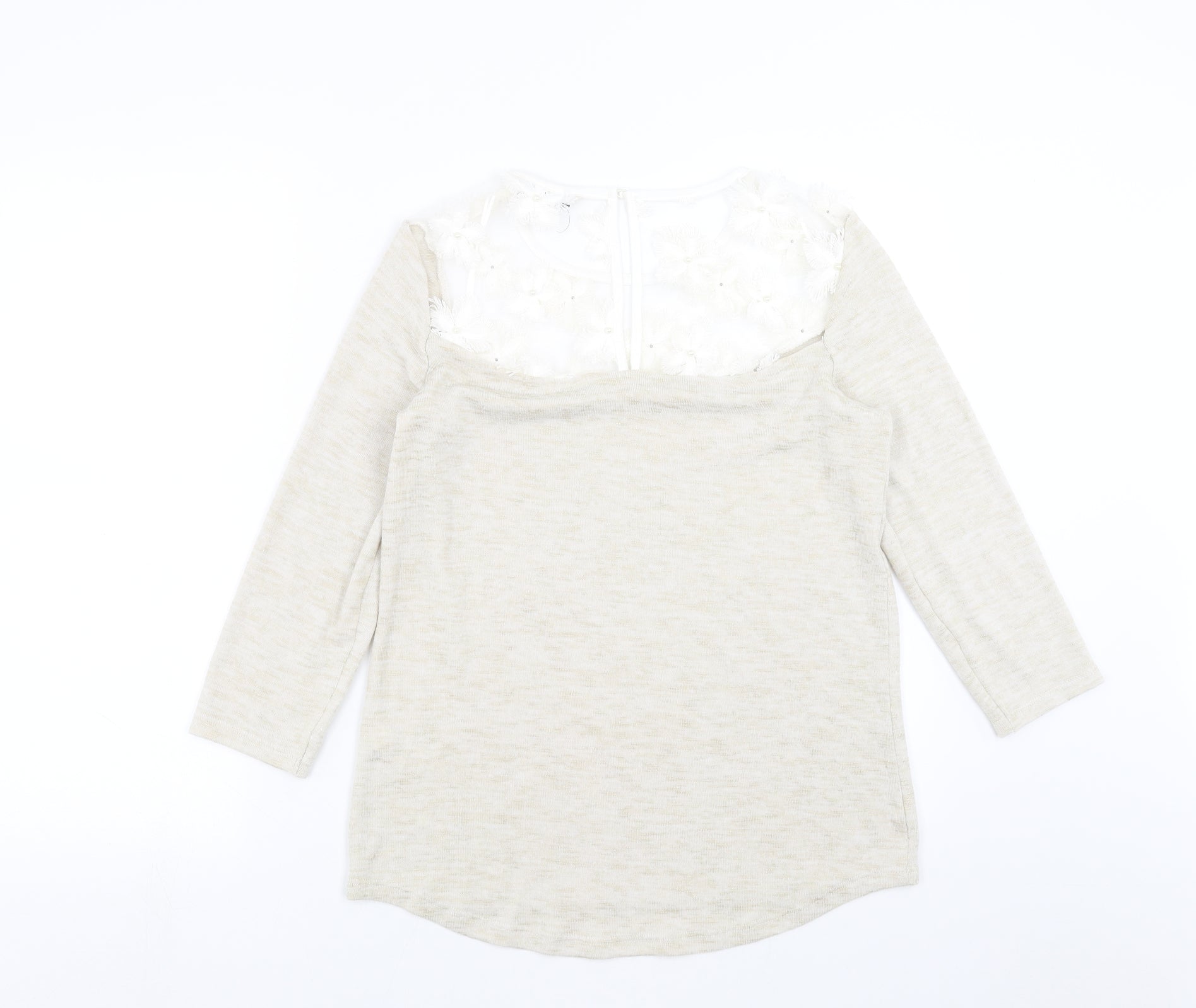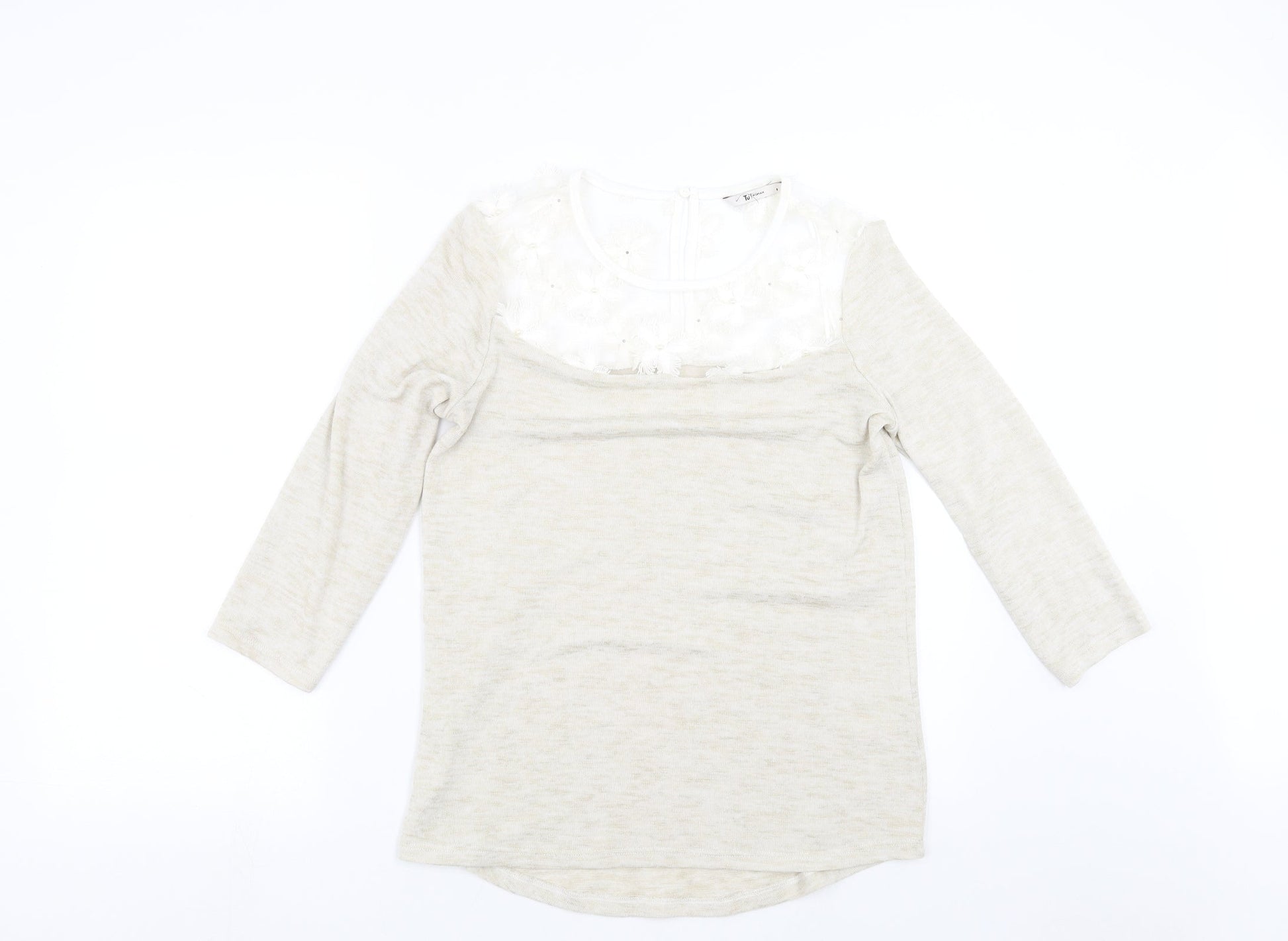 TU Womens Beige Knit Pullover Jumper Size 8 - floral neck detail