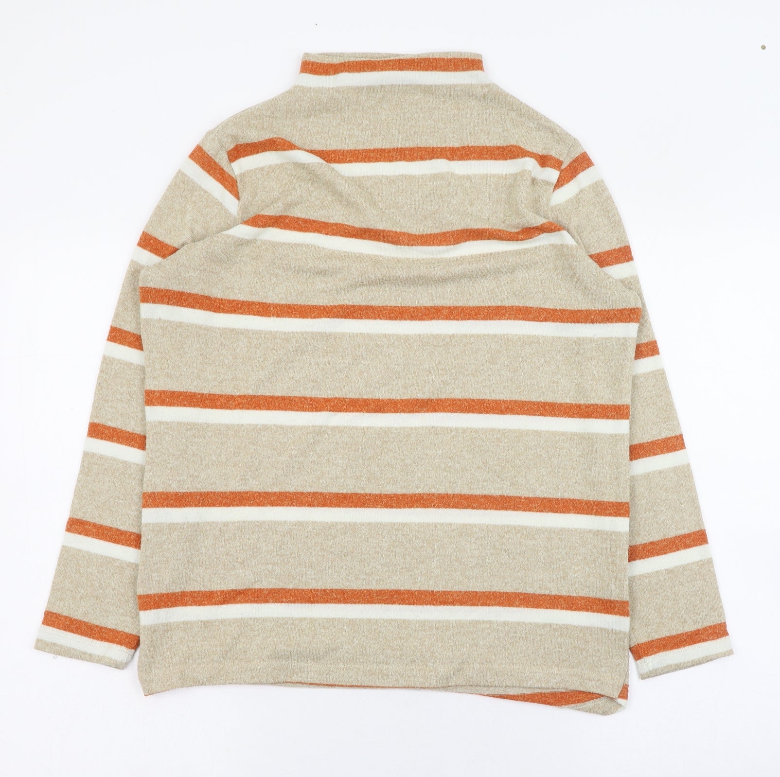 TU Womens Beige Mock Neck Striped Polyester Pullover Jumper Size 14