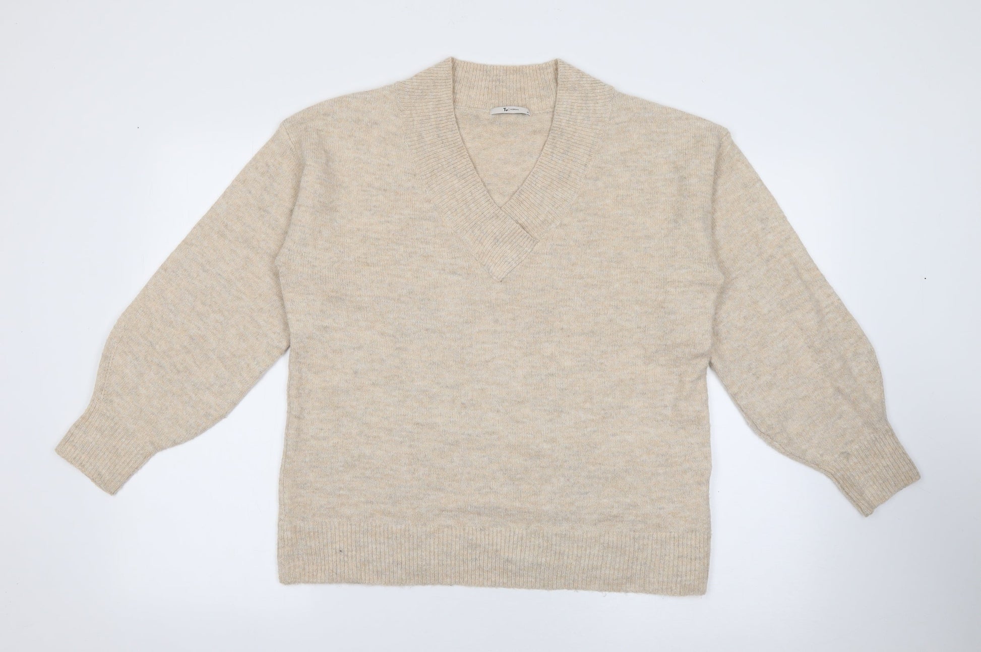 TU Womens Beige V-Neck Acrylic Pullover Jumper Size M