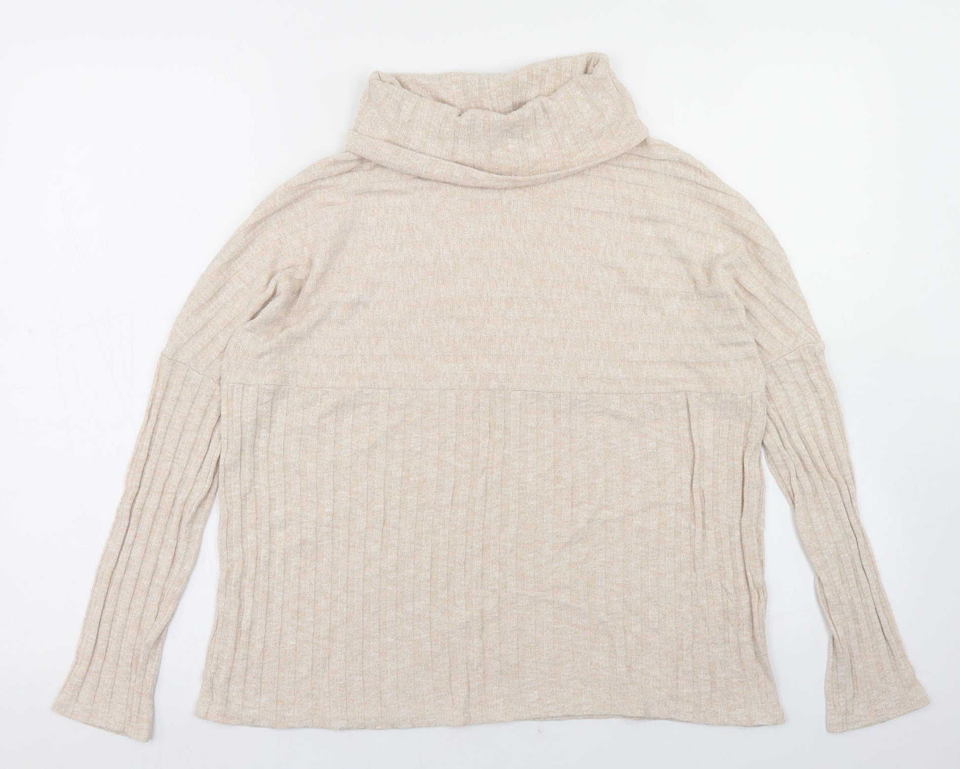 TU Womens Beige Viscose Basic T-Shirt Size 10 Roll Neck