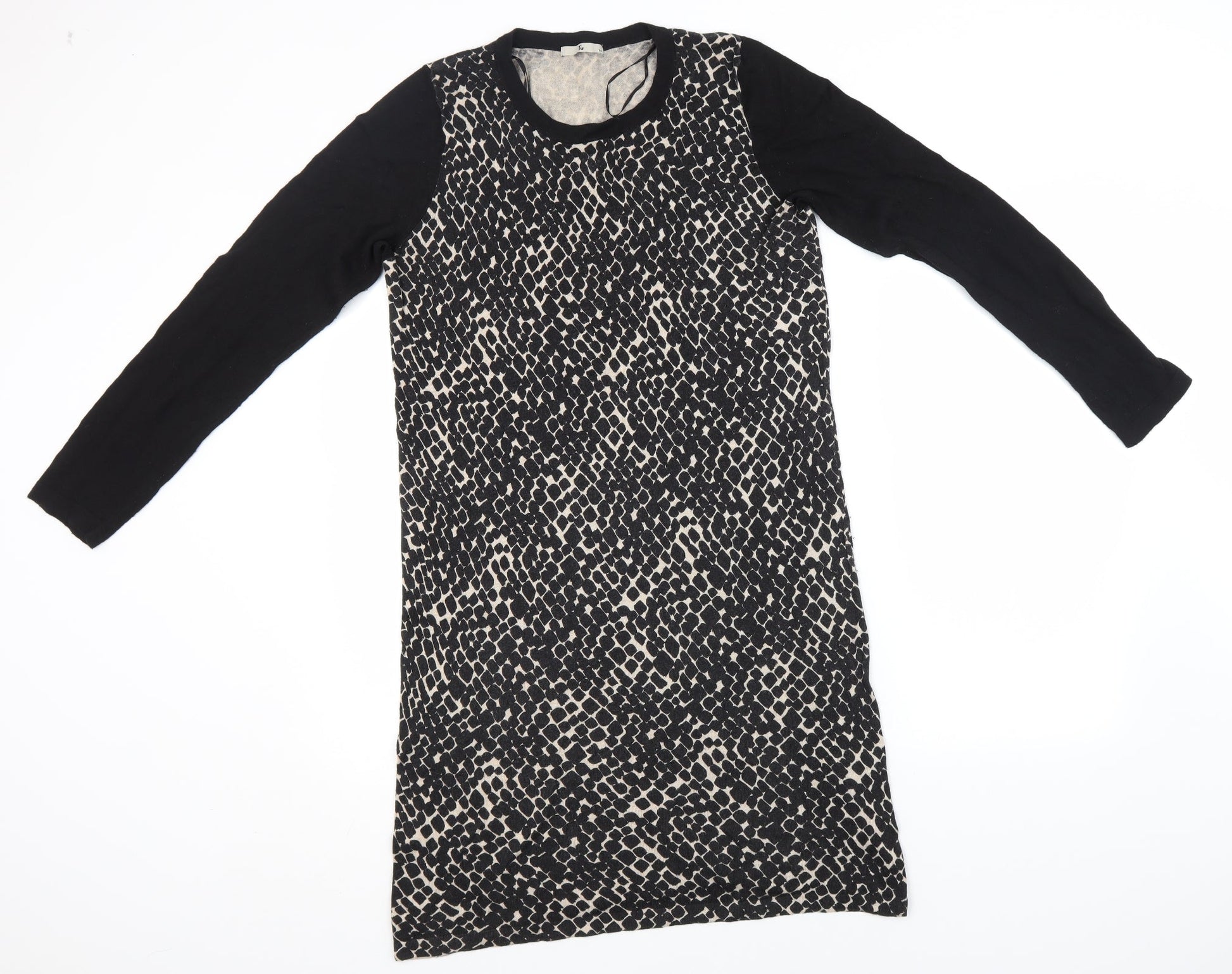 TU Womens Black Animal Print Polyamide T-Shirt Dress Size 14 Round Neck