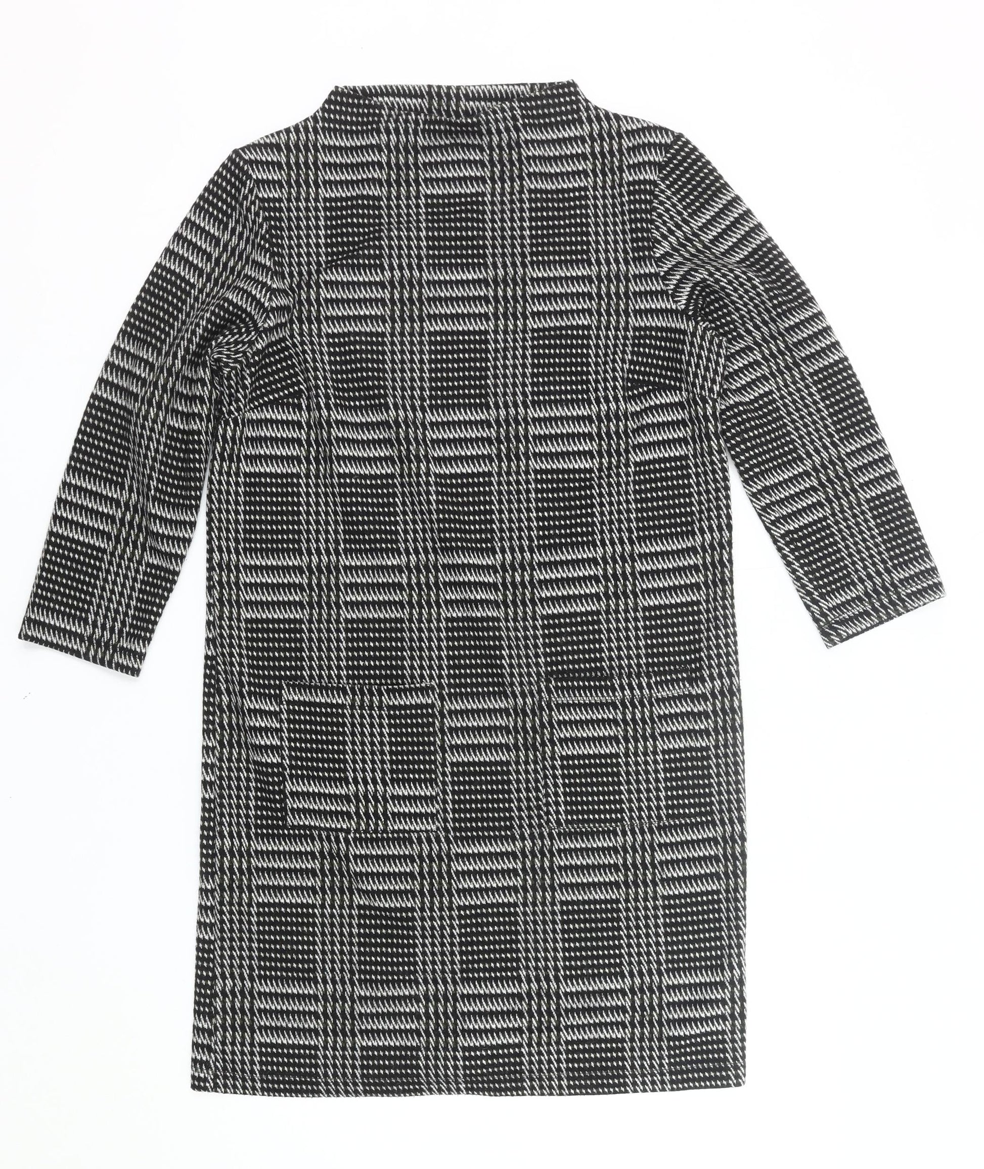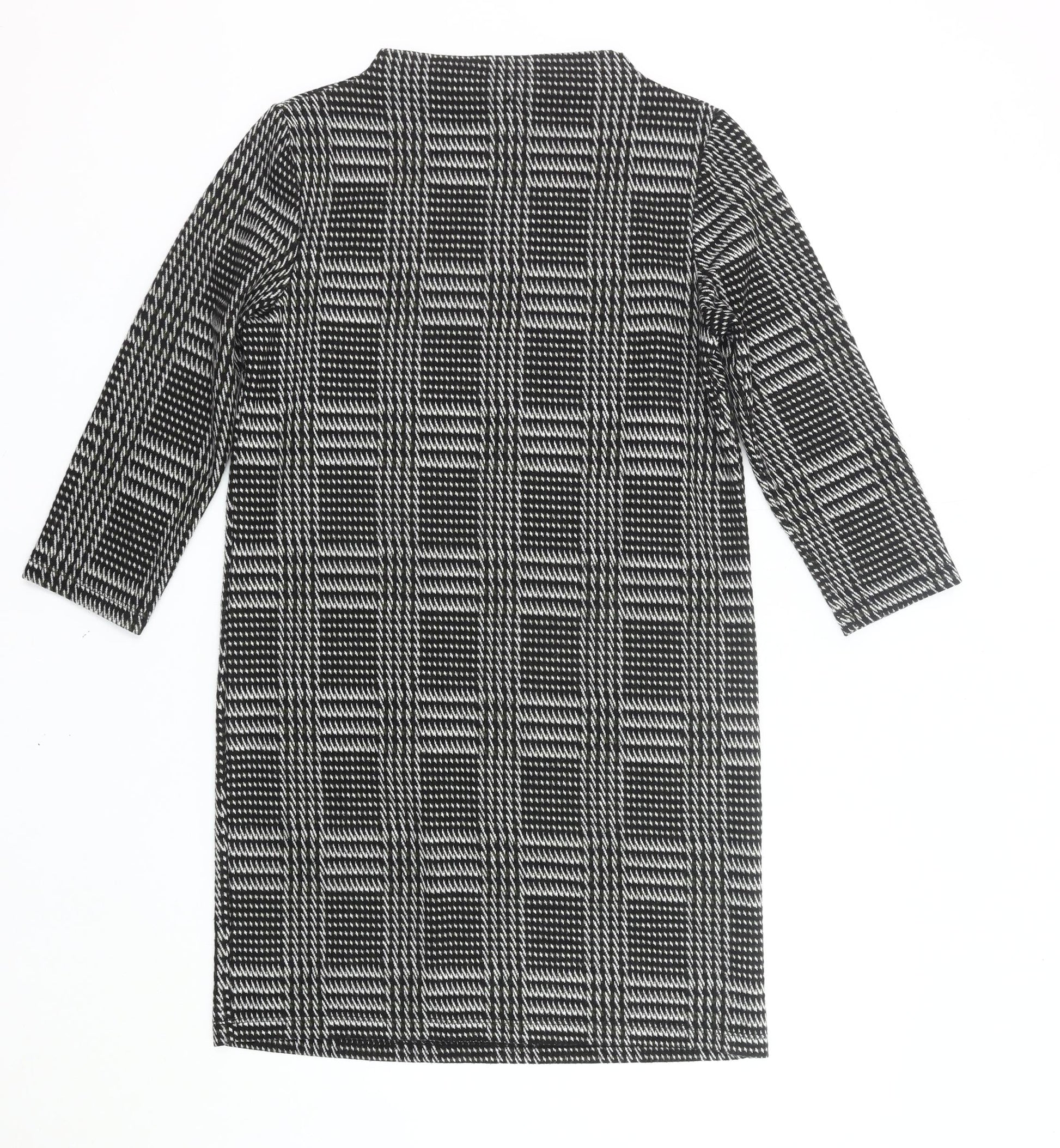 Tu Womens Black Check Shift Dress Size 8 Knee Length 3/4 Sleeve
