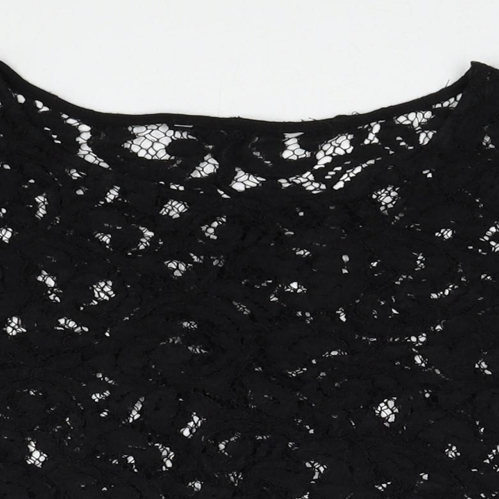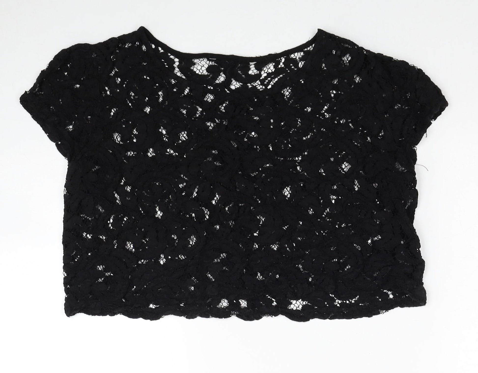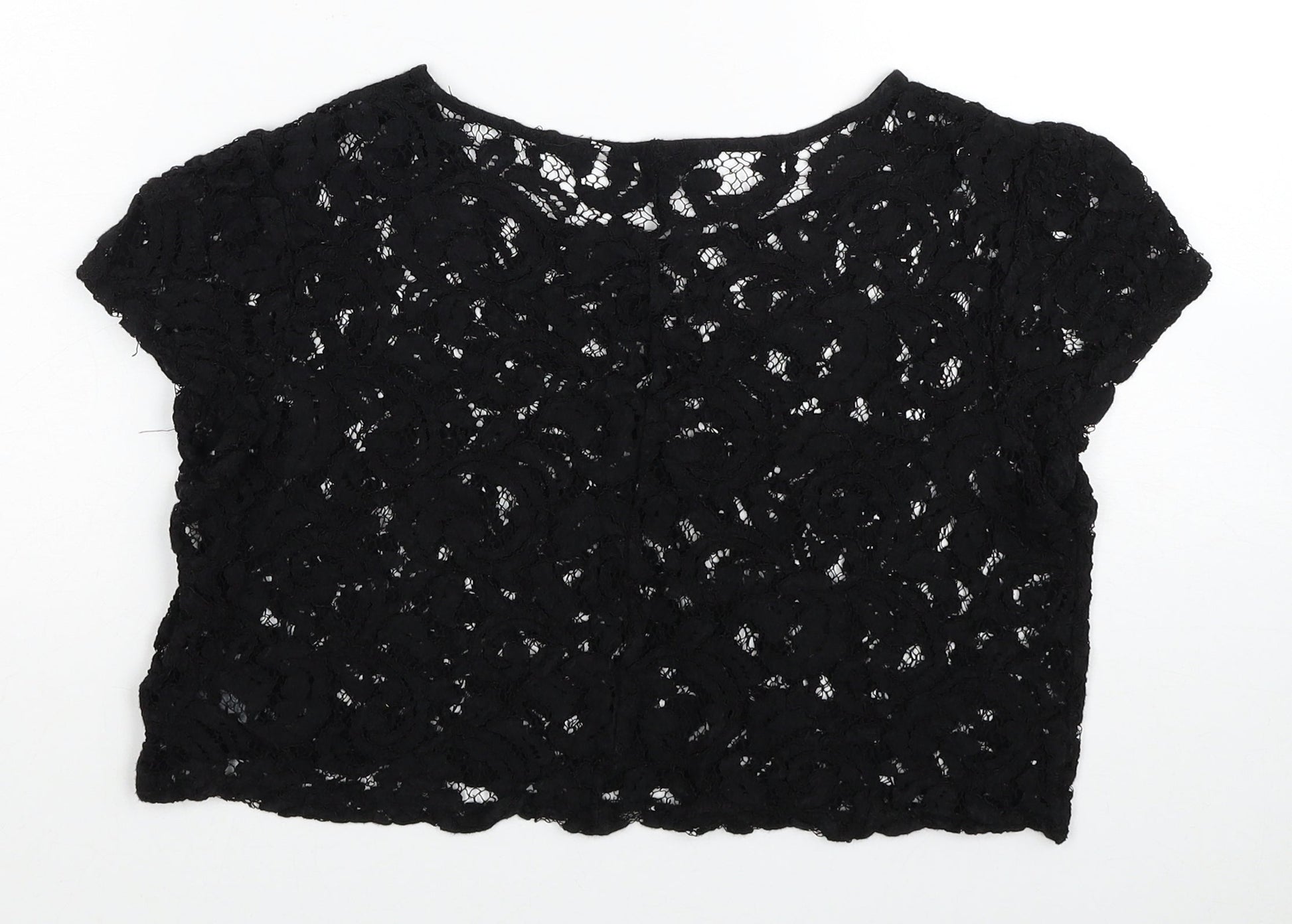TU Womens Black Cotton Cropped Blouse Size 12 Boat Neck