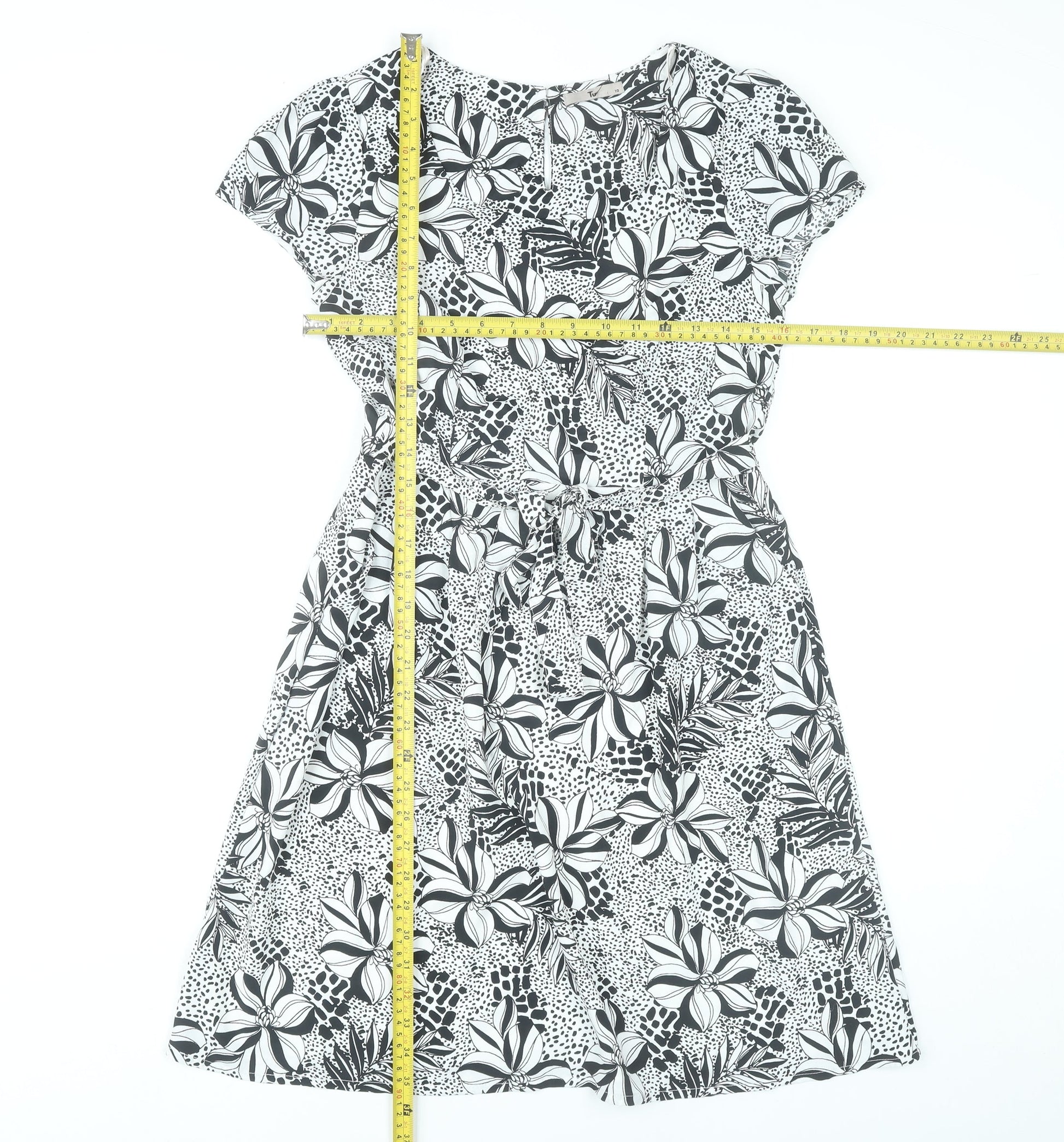 Tu Womens Black Floral A-Line Dress Size 10 Knee Length Short Sleeve