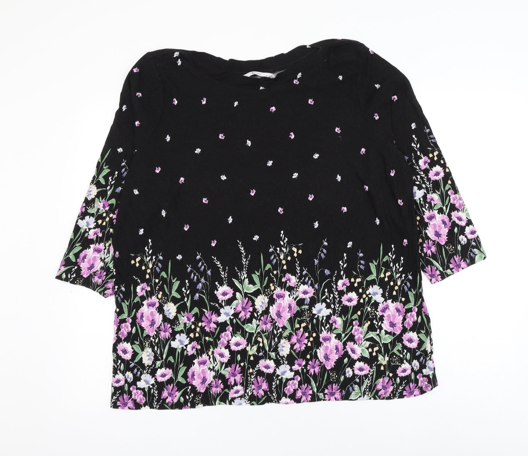 TU Womens Black Floral Viscose Basic Blouse Size 22 Boat Neck
