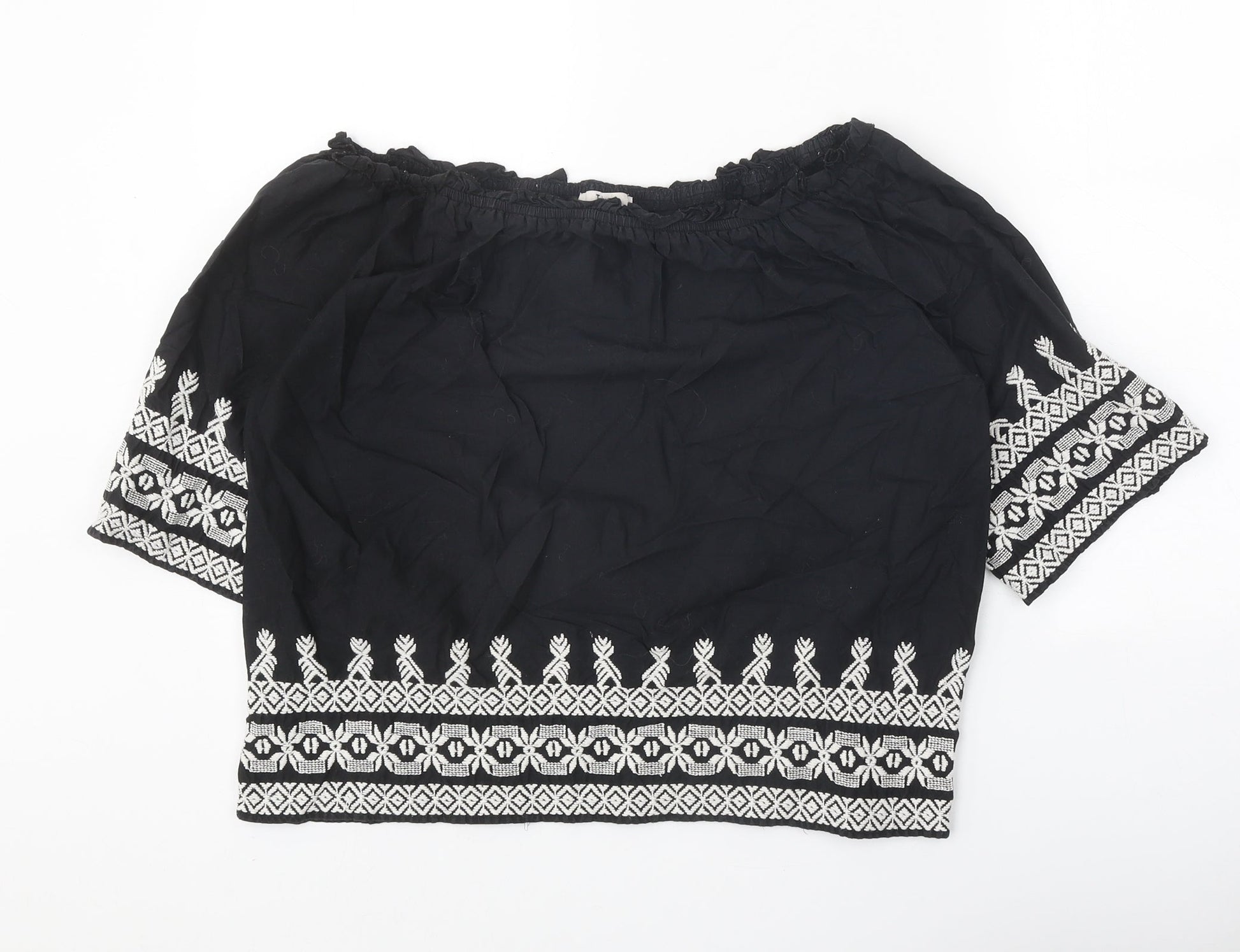 TU Womens Black Geometric 100% Cotton Cropped Blouse Size 12 Off the Shoulder - Bardot