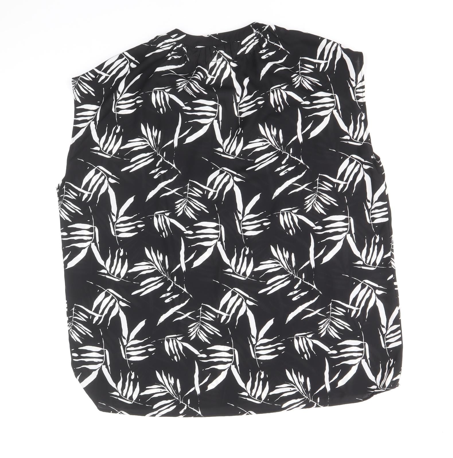 TU Womens Black Geometric Polyester Basic Blouse Size 10 V-Neck