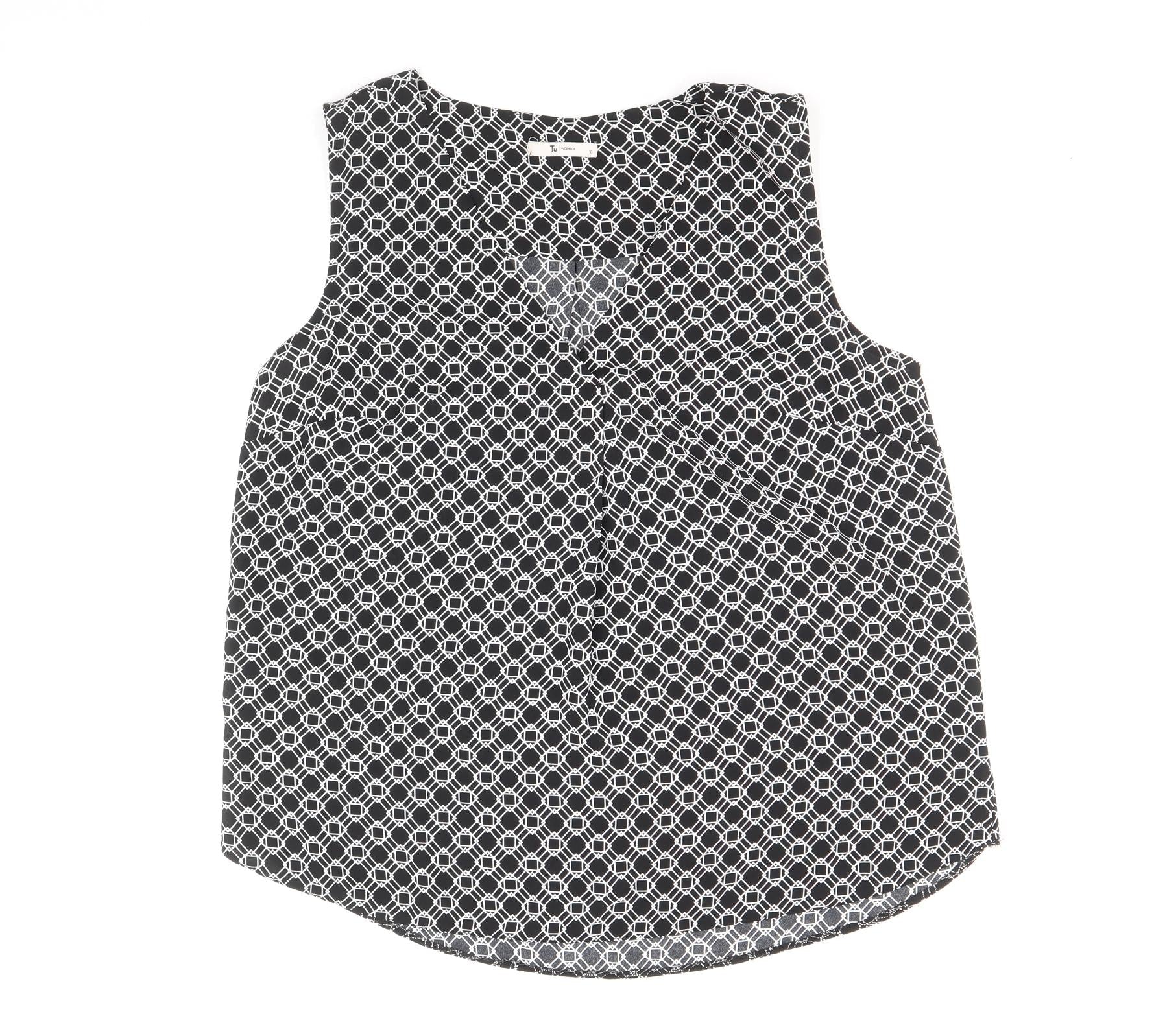 TU Womens Black Geometric Polyester Basic Tank Size 10 V-Neck