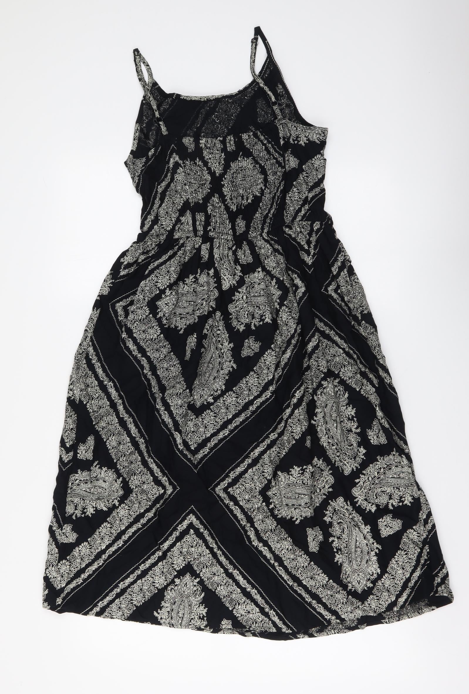 TU Womens Black Geometric Viscose A-Line Size 10 Round Neck Pullover