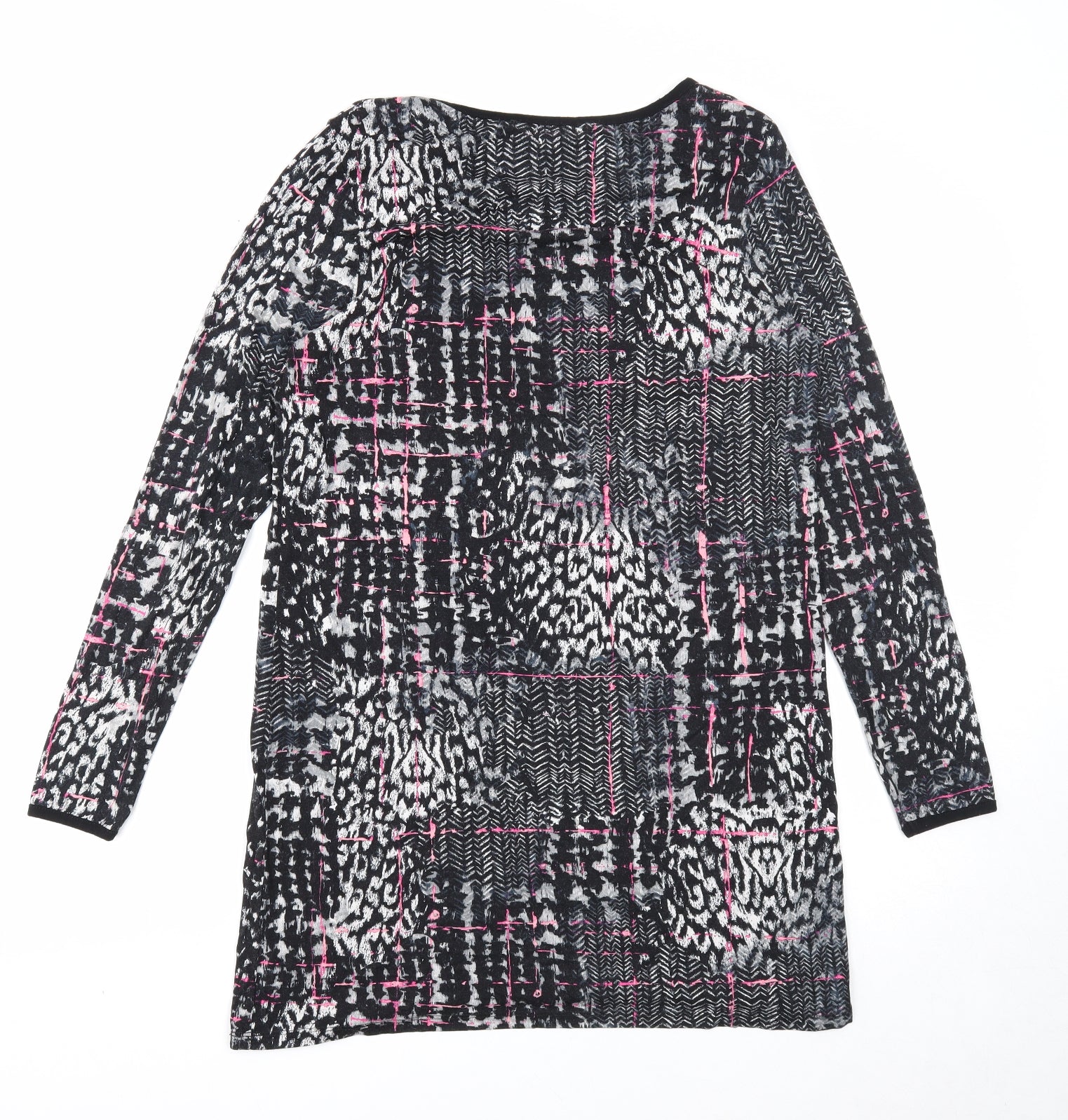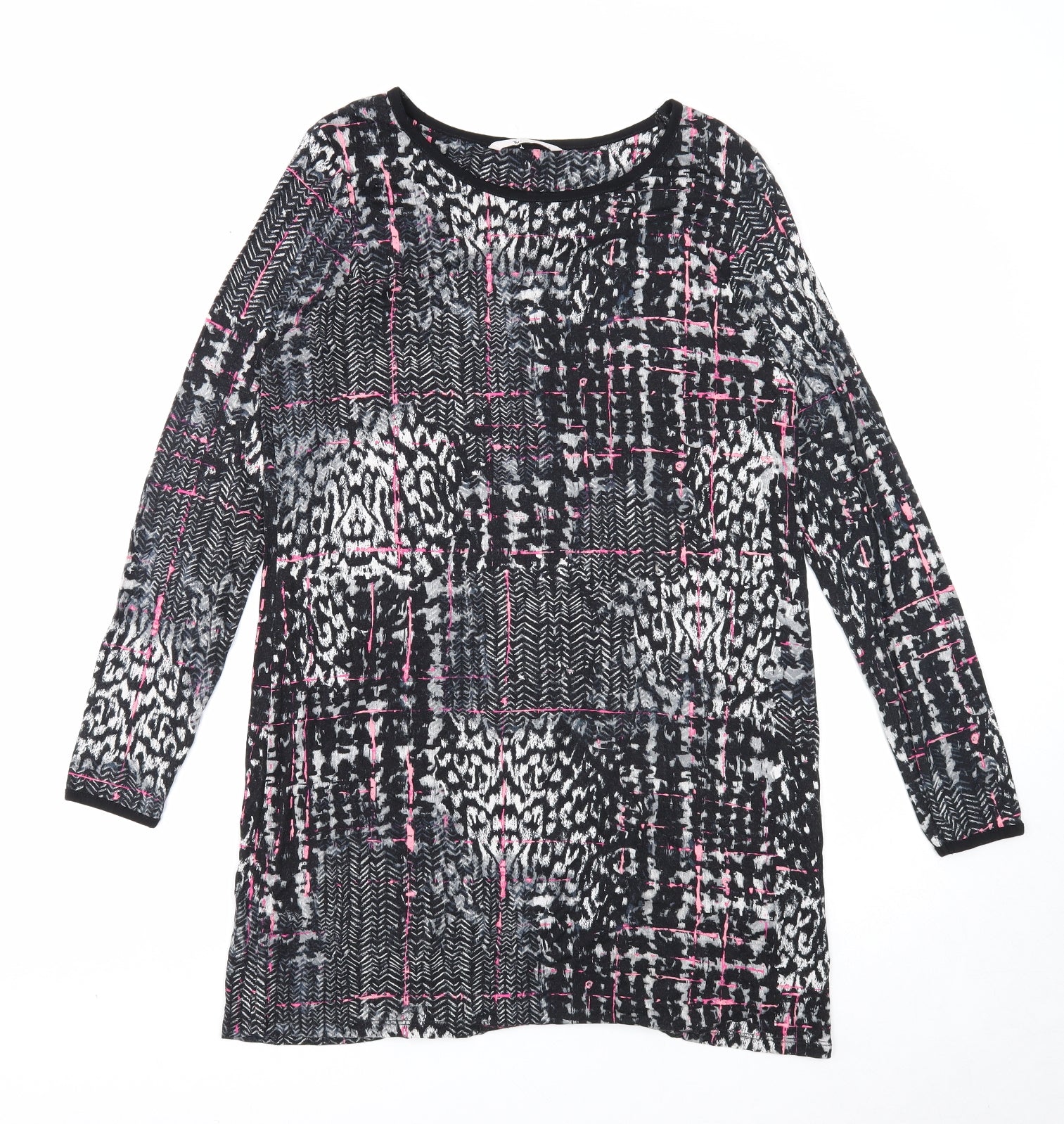 TU Womens Black Geometric Viscose A-Line Size 12 Round Neck Pullover