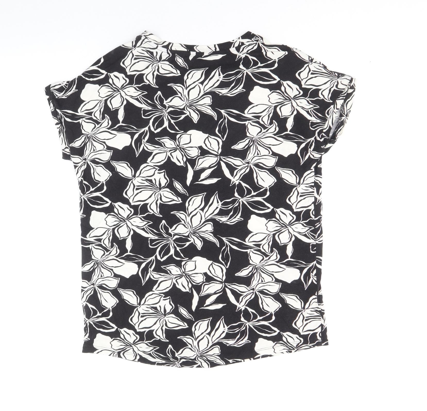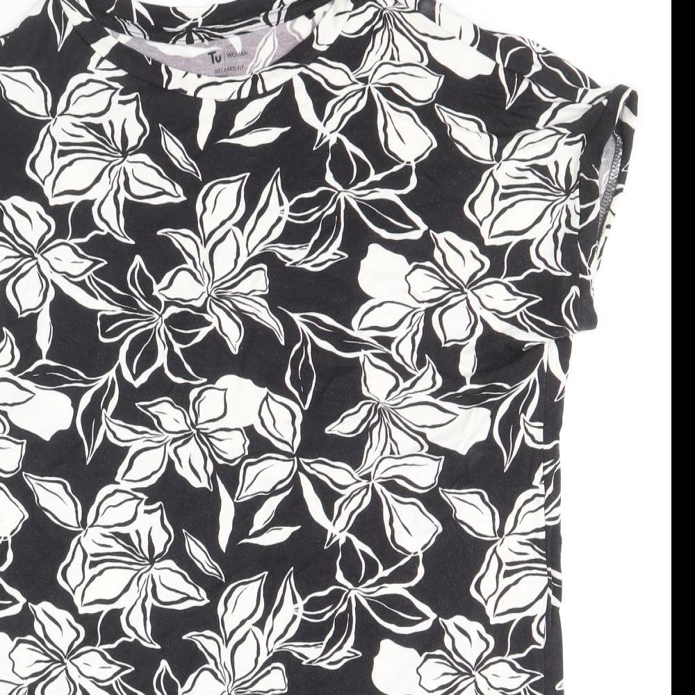 TU Womens Black Geometric Viscose Basic Blouse Size 8 Round Neck