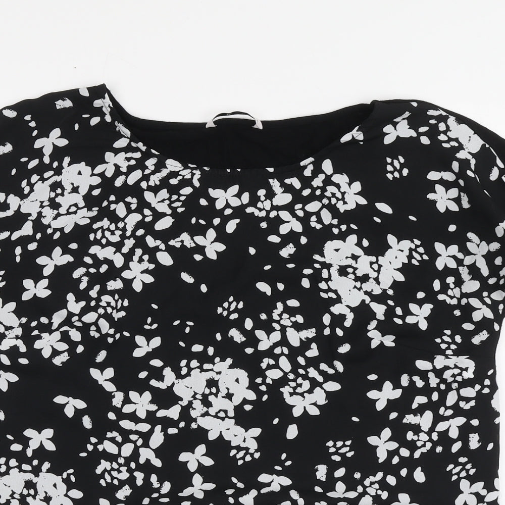 TU Womens Black Geometric Viscose Basic T-Shirt Size 10 Round Neck