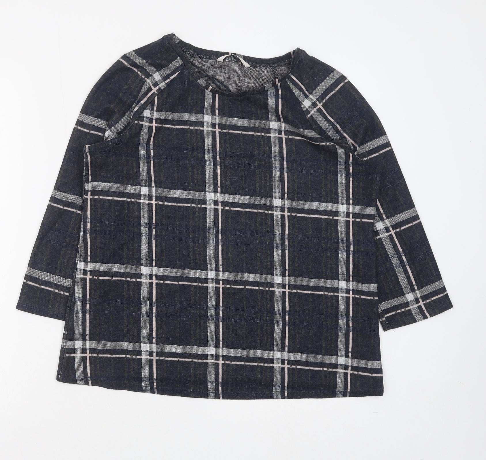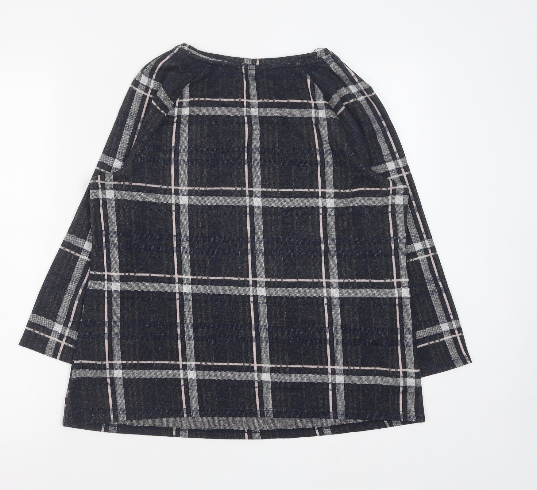 TU Womens Black Plaid Polyester Basic Blouse Size 14 Scoop Neck