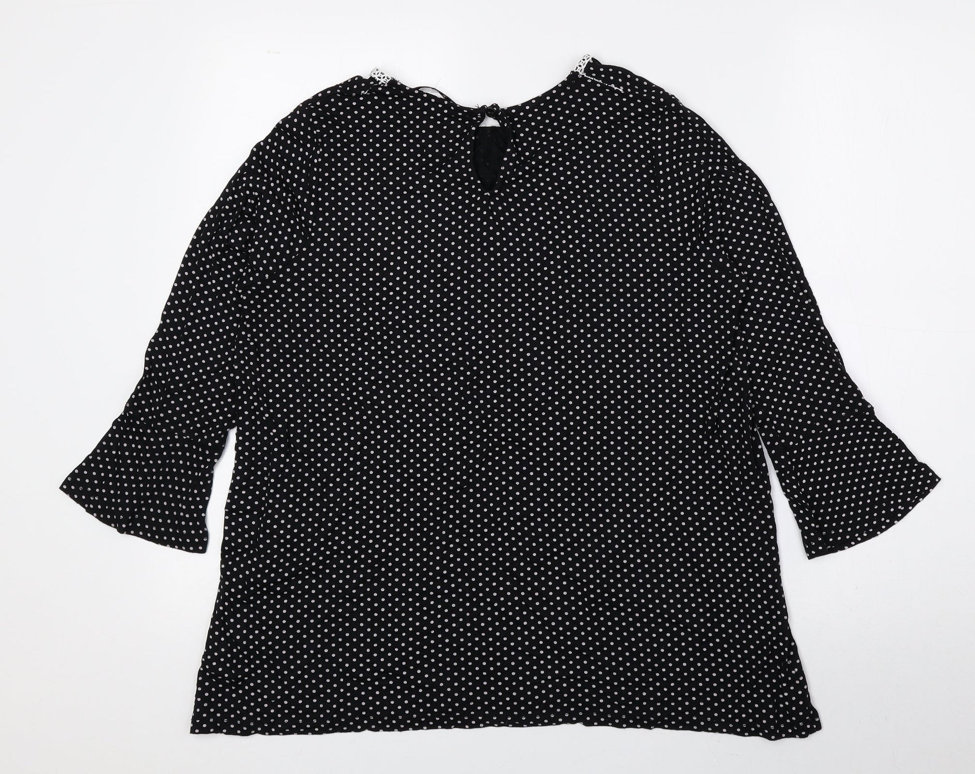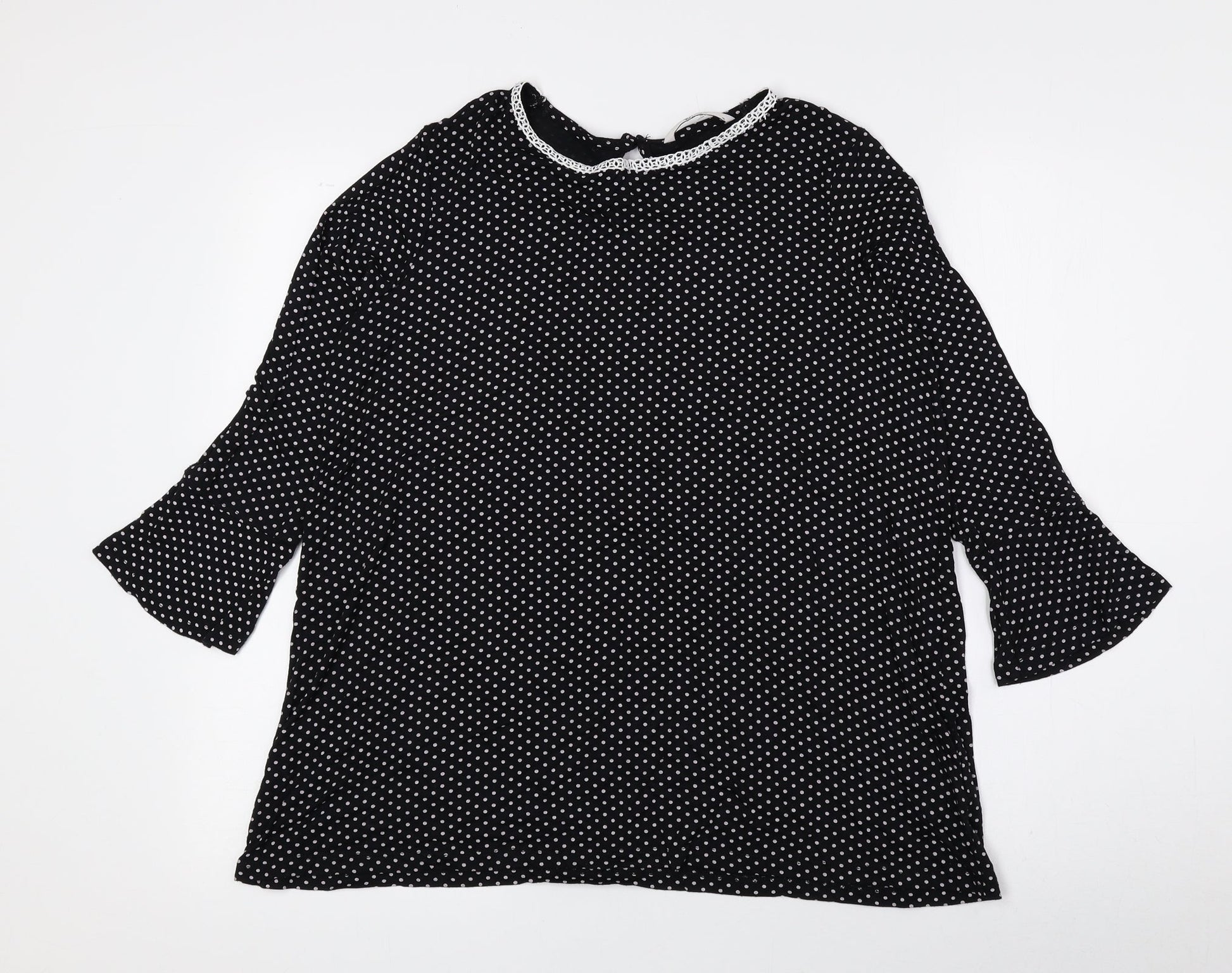 TU Womens Black Polka Dot Viscose Basic Blouse Size 12 Round Neck