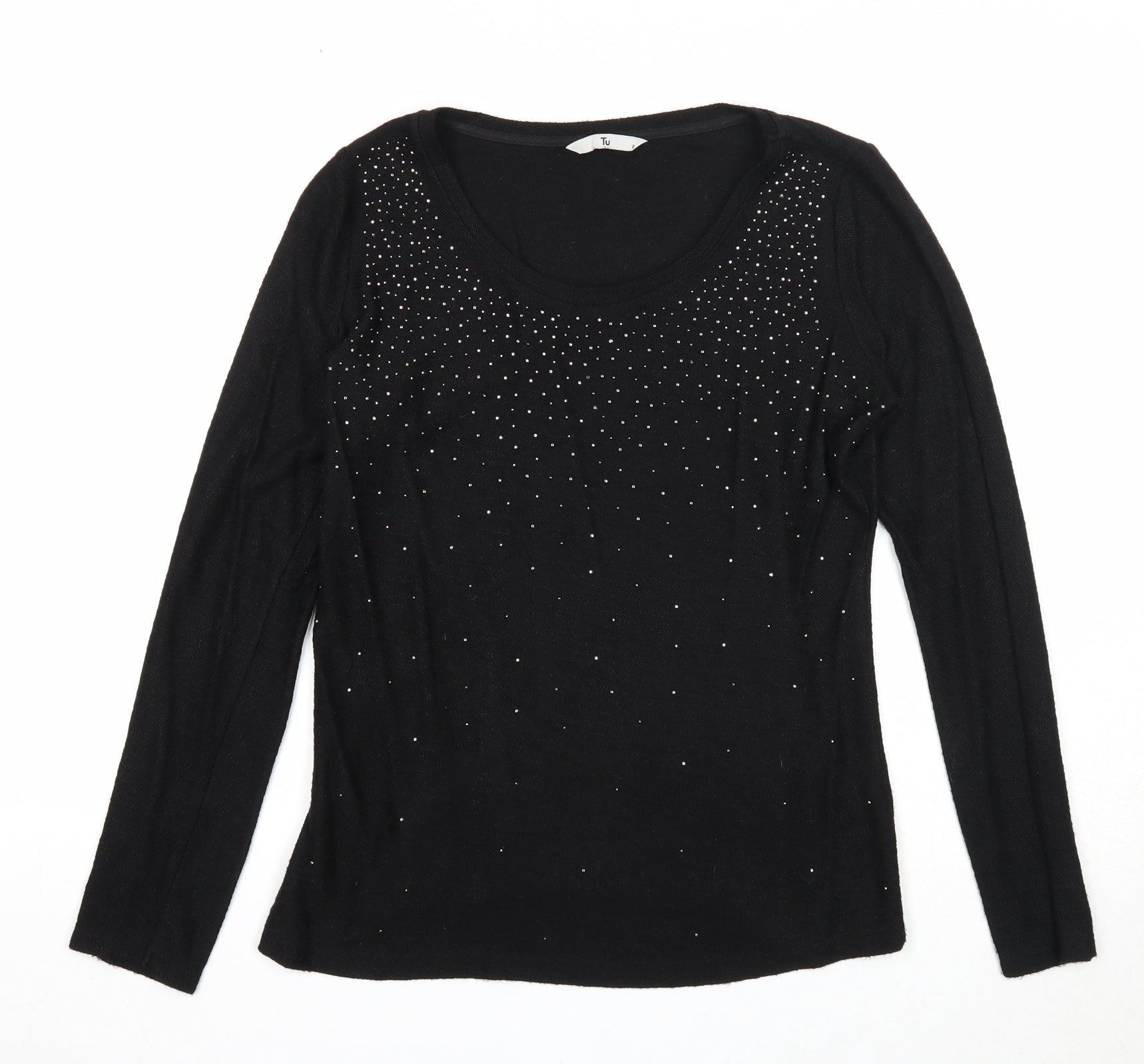 TU Womens Black Scoop Neck Viscose Pullover Jumper Size 8