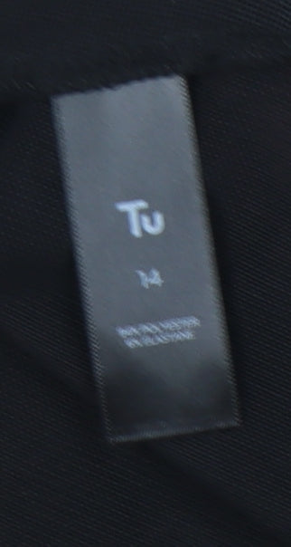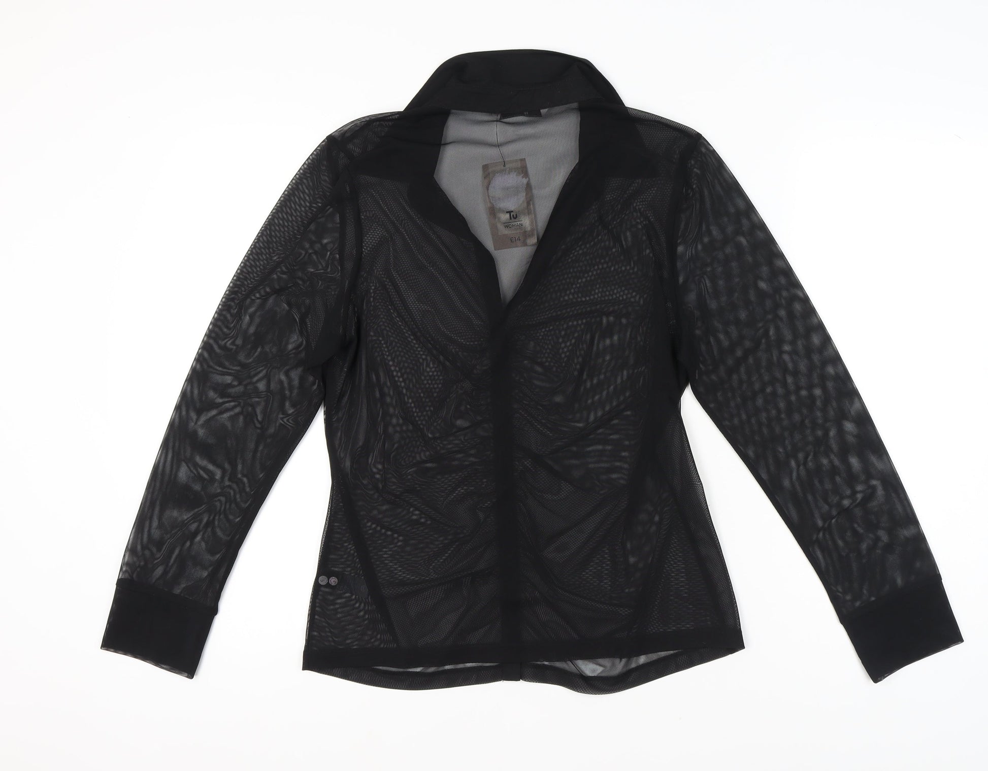 Tu Womens Black Sheer Mesh Blouse Size 14 Long Sleeve Collared