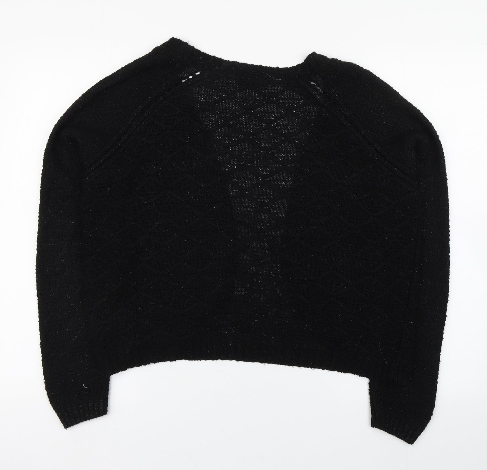 TU Womens Black V-Neck Acrylic Cardigan Jumper Size 12