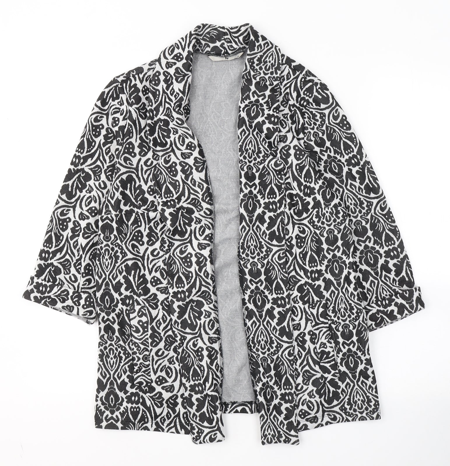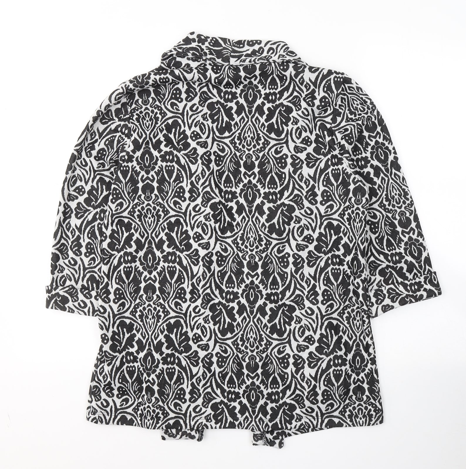TU Womens Black V-Neck Floral Polyester Cardigan Jumper Size 14