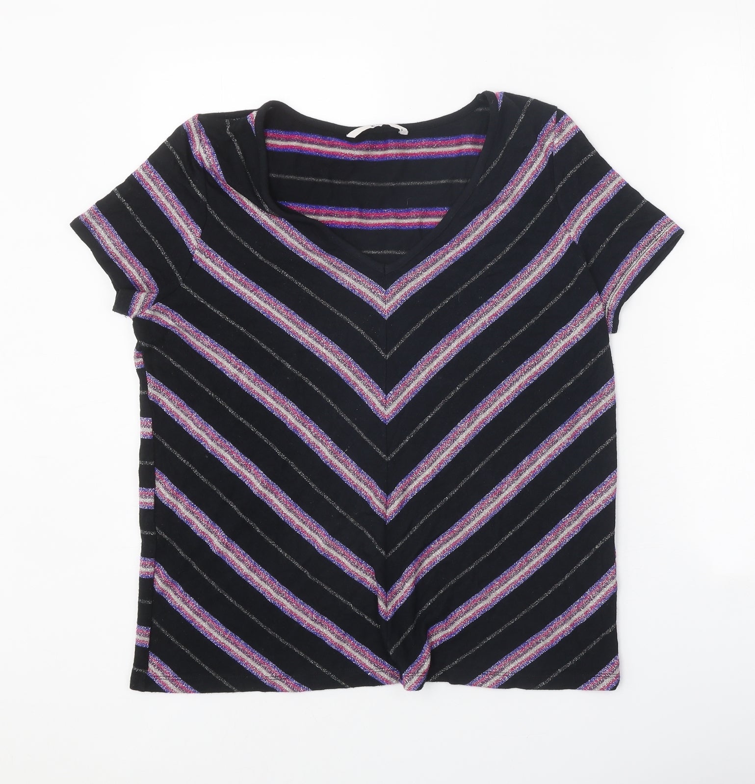 TU Womens Black V-Neck Herringbone Viscose Pullover Jumper Size 14