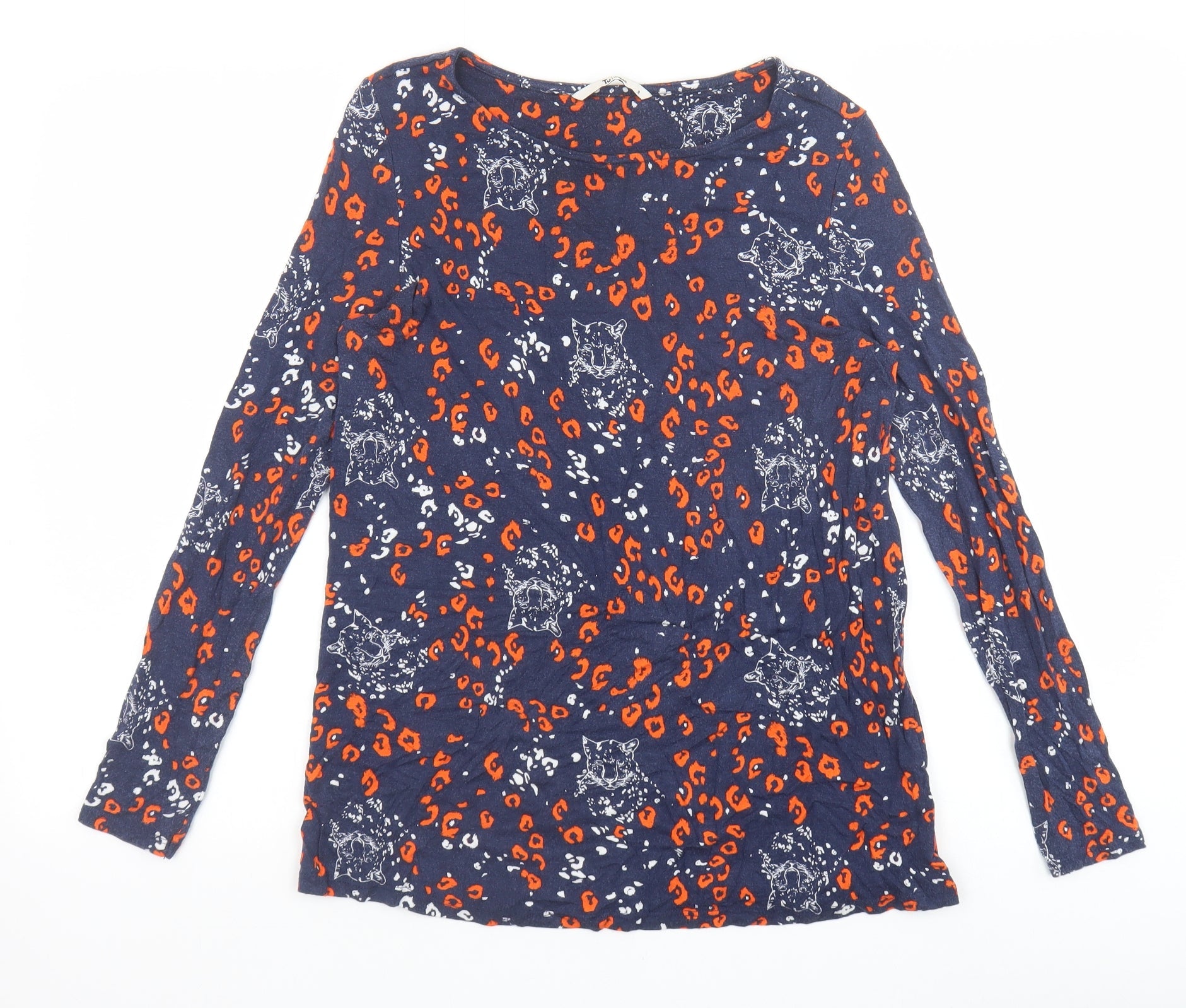TU Womens Blue Animal Print Modal Basic T-Shirt Size 8 Boat Neck - Leopard Print