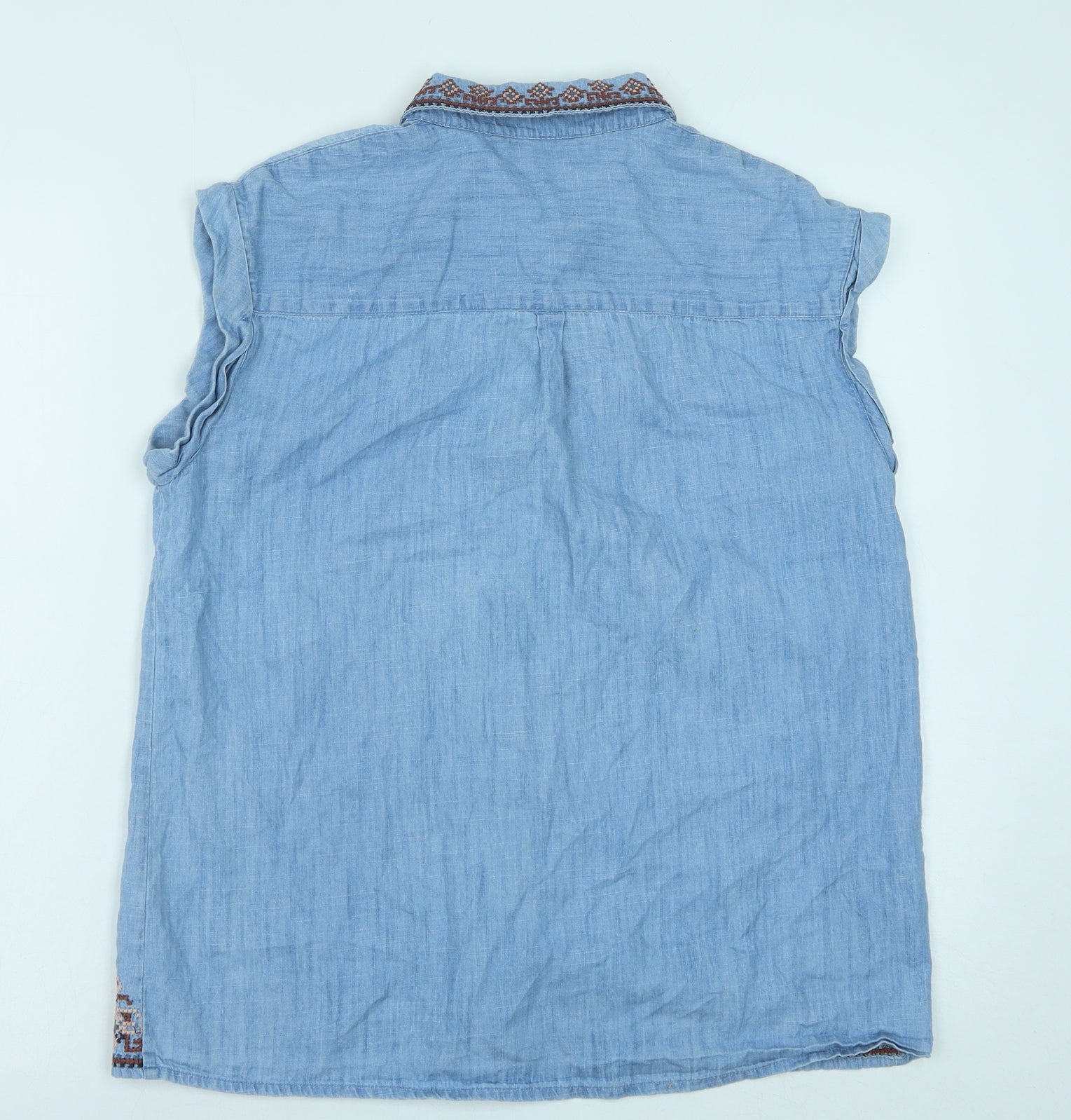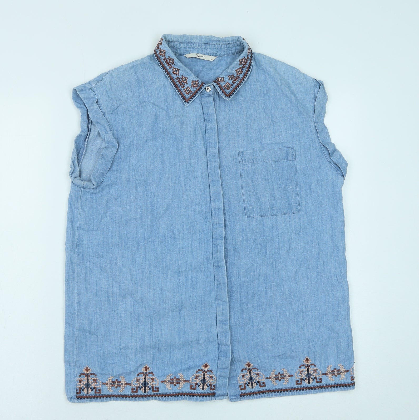 TU Womens Blue Cotton Basic Button-Up Size 10 Collared