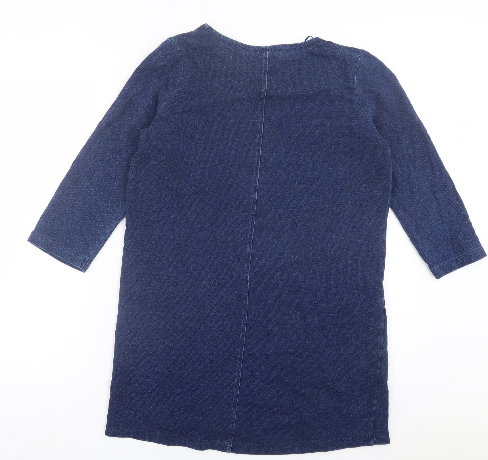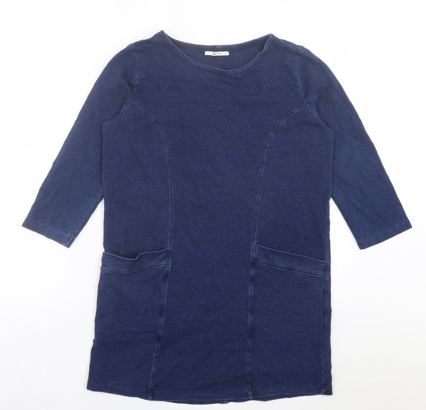 TU Womens Blue Cotton Jumper Dress Size 10 Crew Neck Pullover