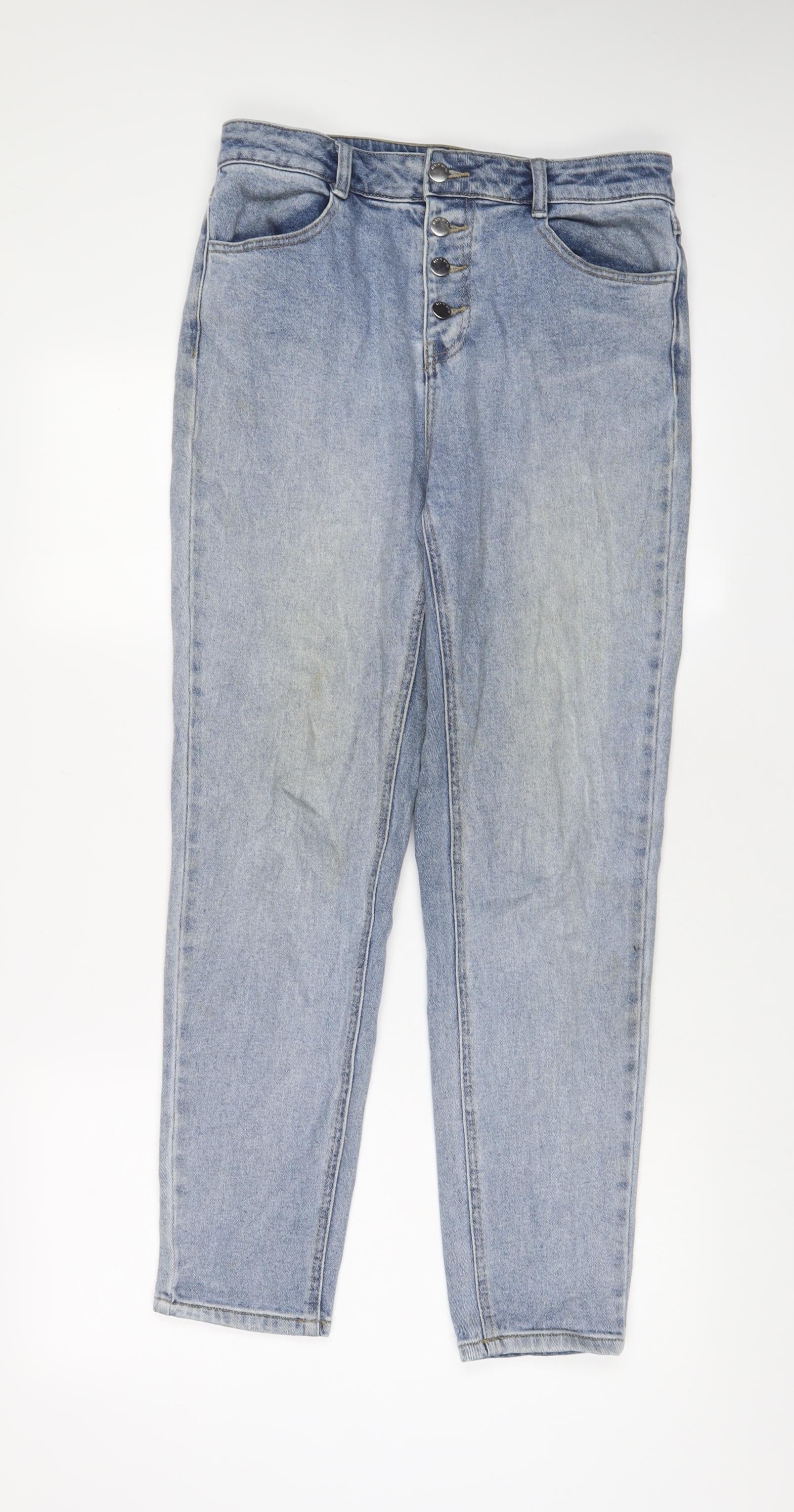 TU Womens Blue Cotton Mom Jeans Size 12 L29 in Regular Button