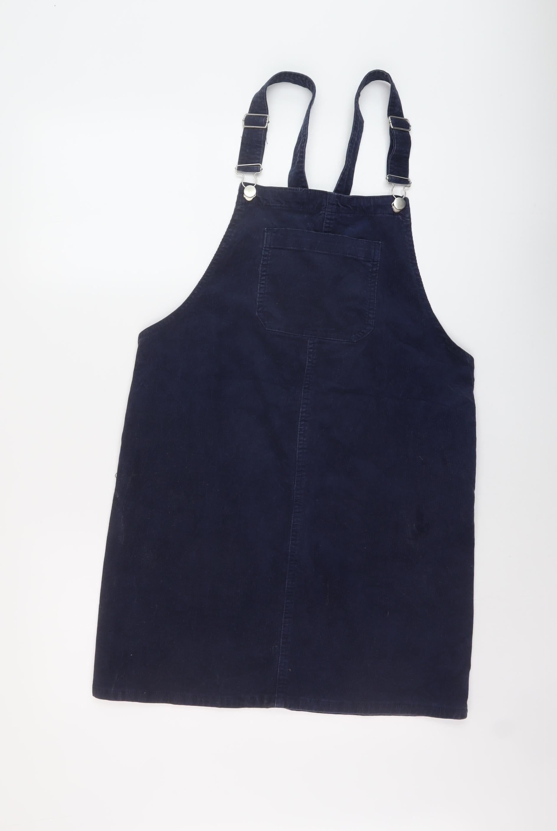 TU Womens Blue Cotton Pinafore/Dungaree Dress Size 10 Square Neck Buckle