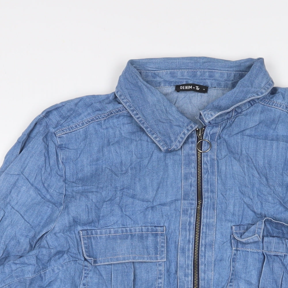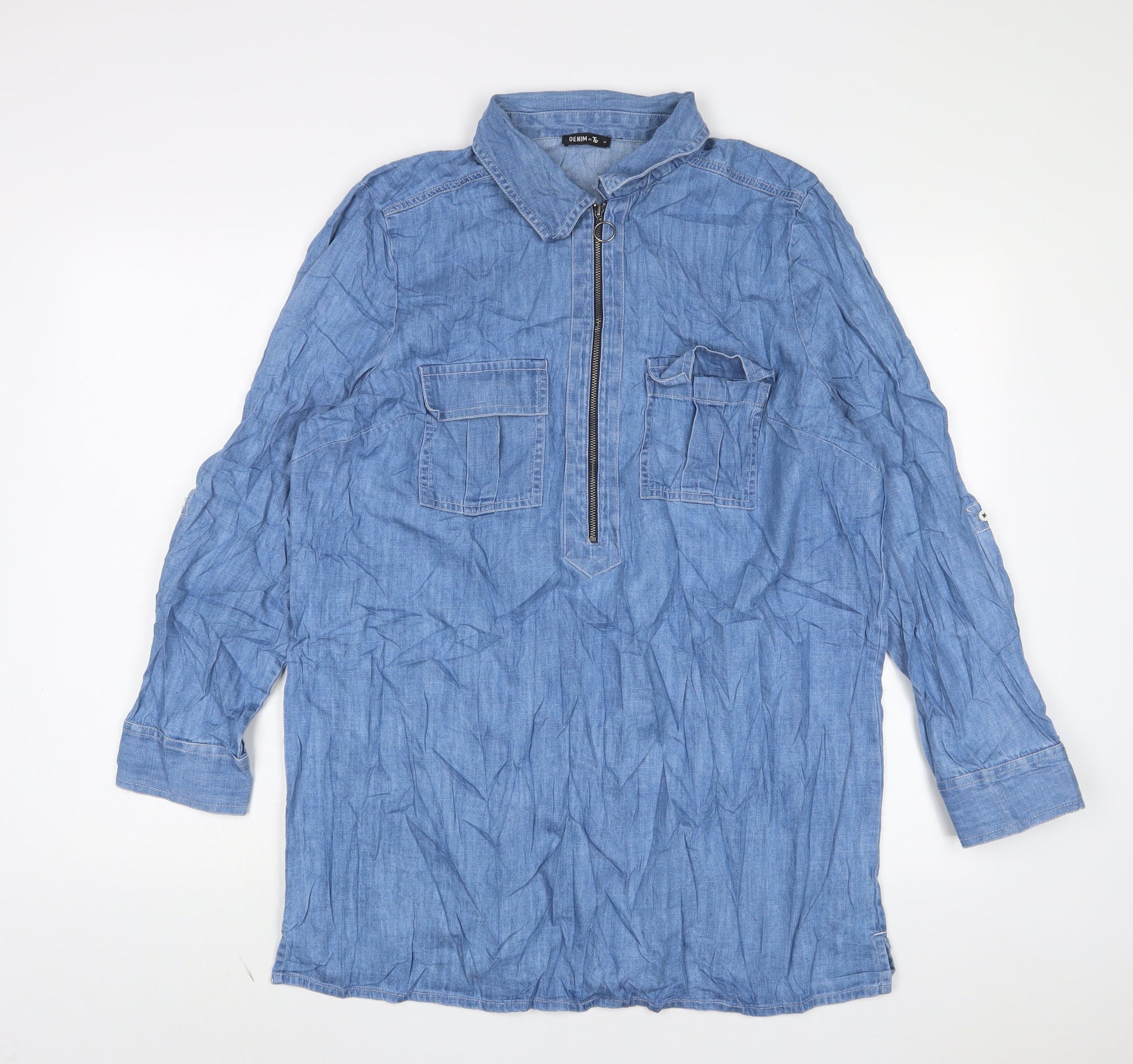 TU Womens Blue Cotton Sheath Size 16 Collared Zip