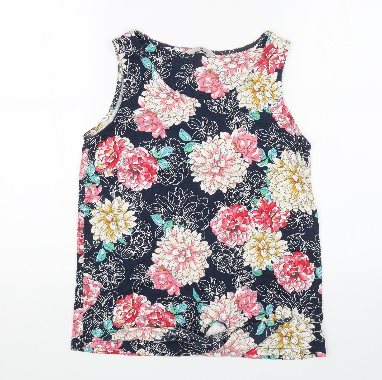 TU Womens Blue Floral Cotton Basic Tank Size 10 Round Neck