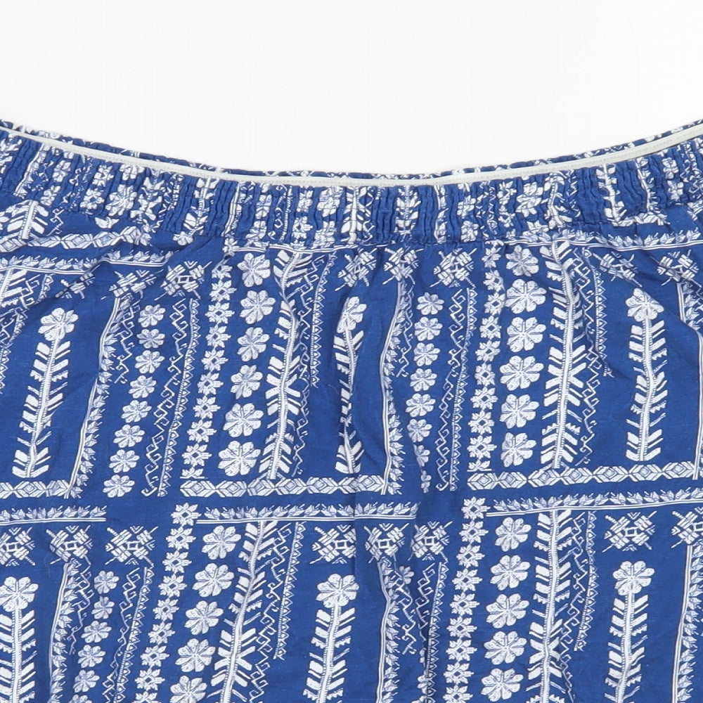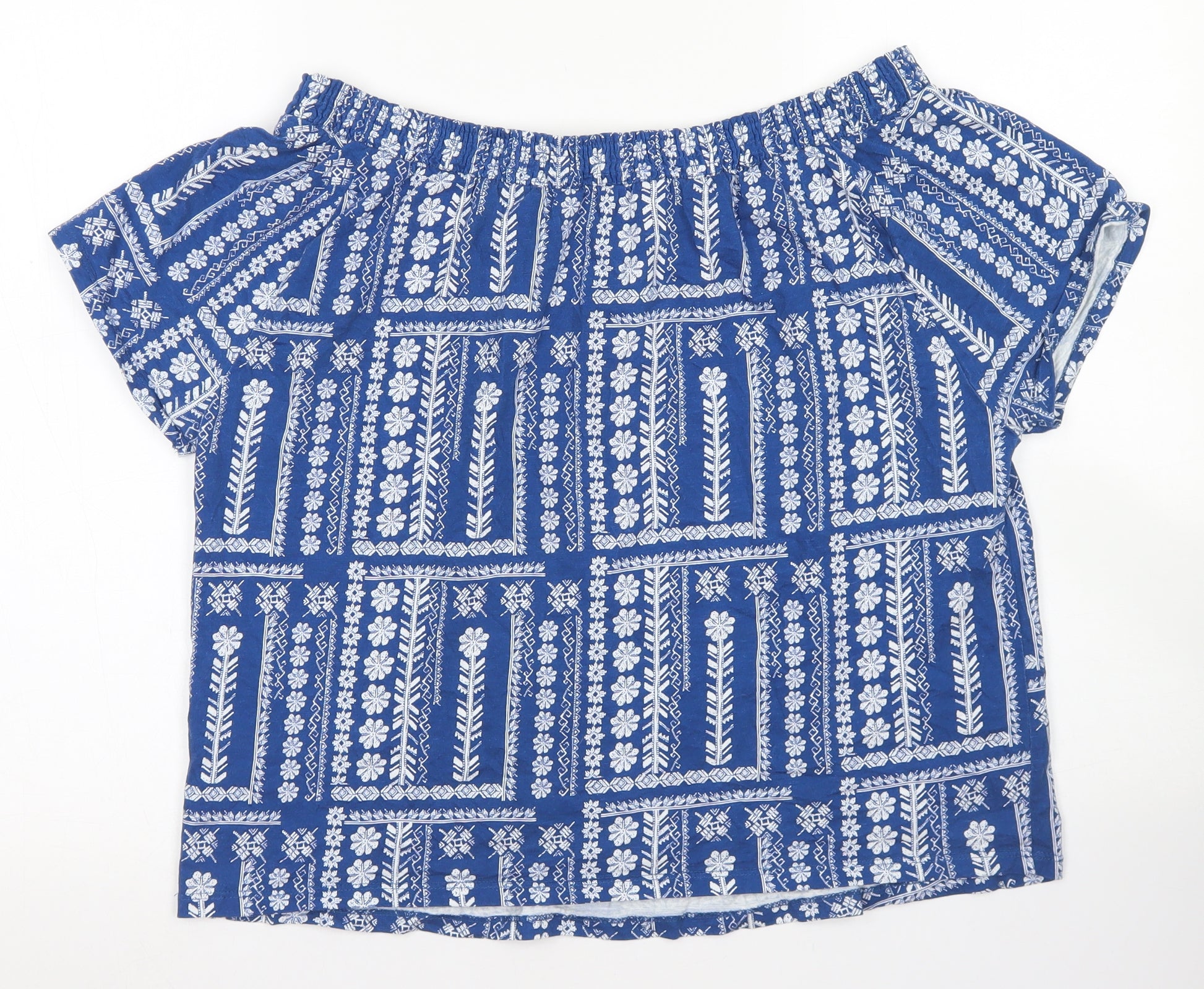 TU Womens Blue Floral Cotton Cropped T-Shirt Size 16 Off the Shoulder
