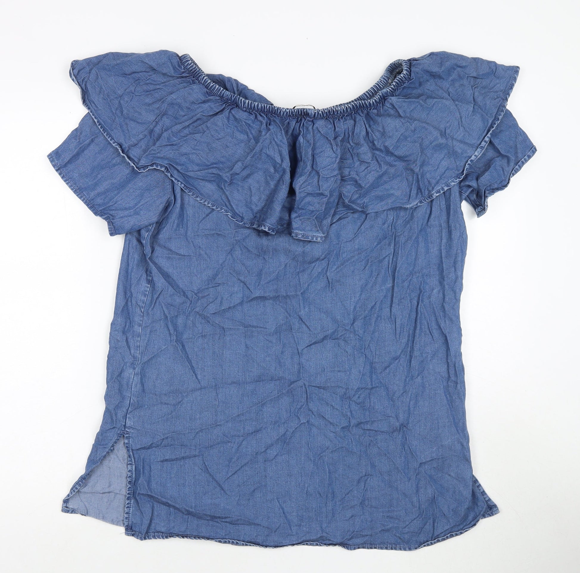 TU Womens Blue Lyocell A-Line Size 12 Off the Shoulder Pullover - Strapless