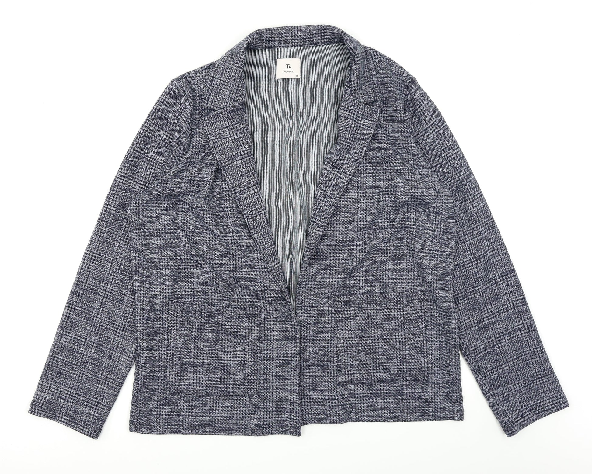 TU Womens Blue Plaid Jacket Size 16