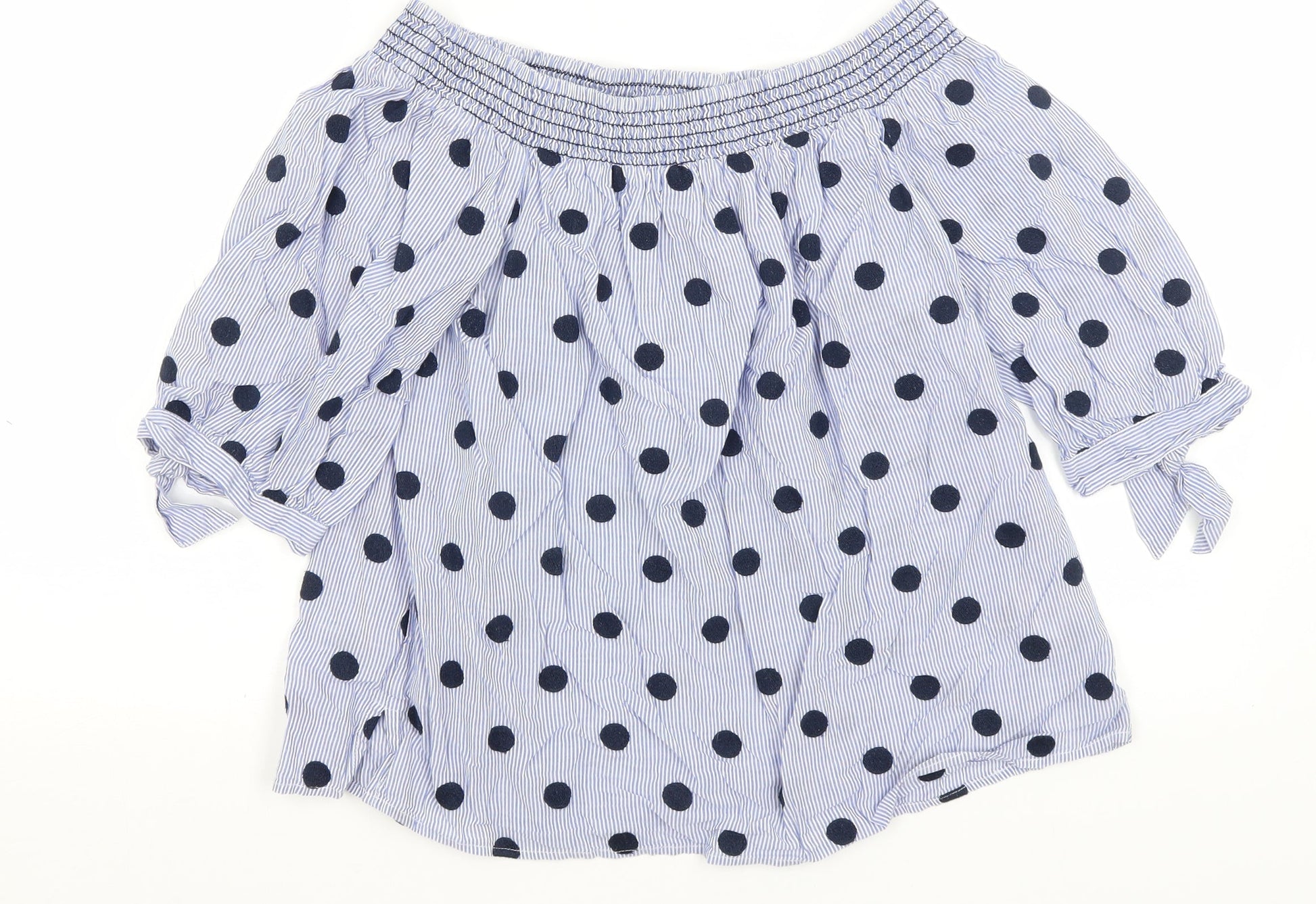 TU Womens Blue Polka Dot Basic Blouse Size 8