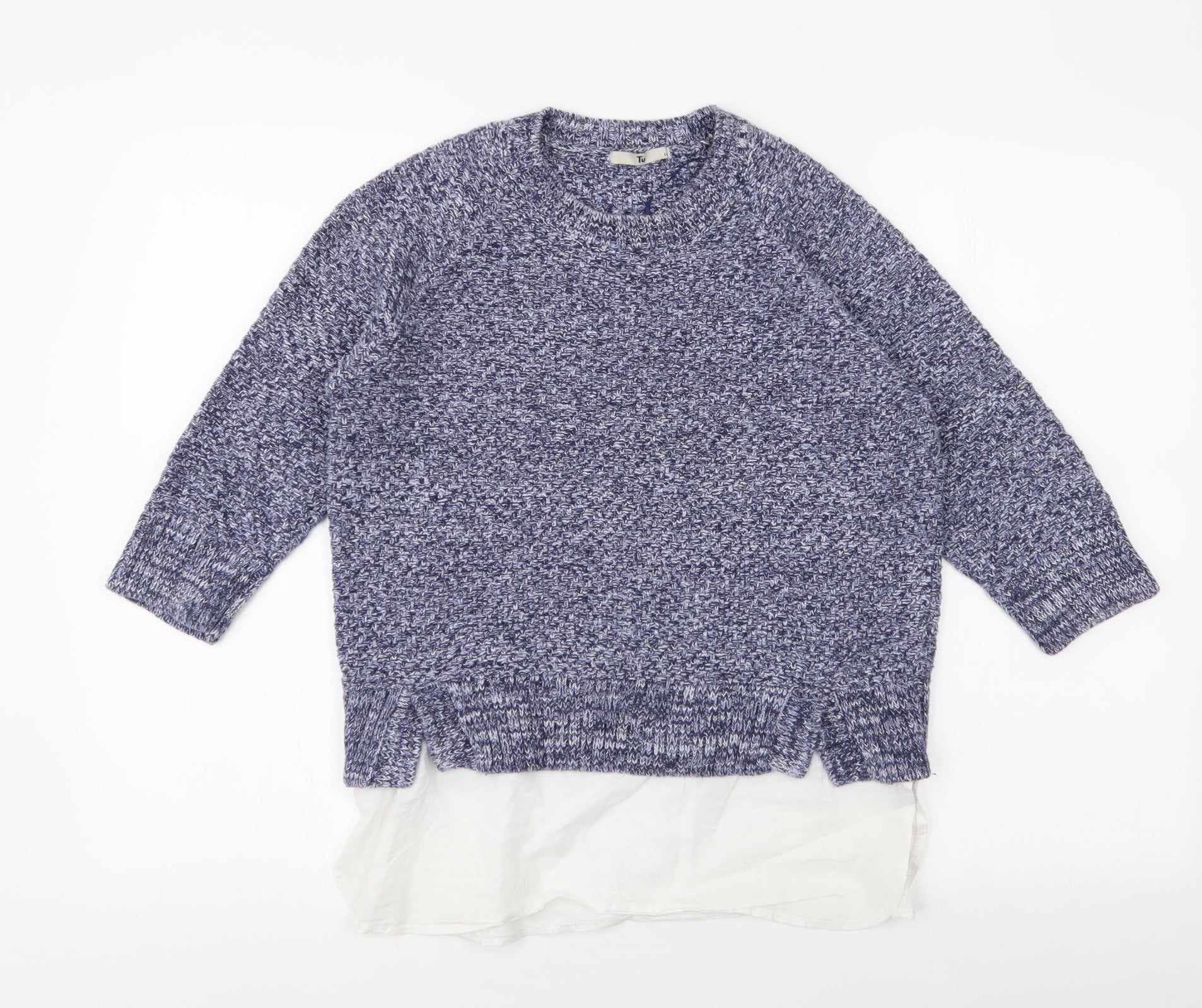 TU Womens Blue Round Neck 100% Cotton Pullover Jumper Size 10 - Shirt insert