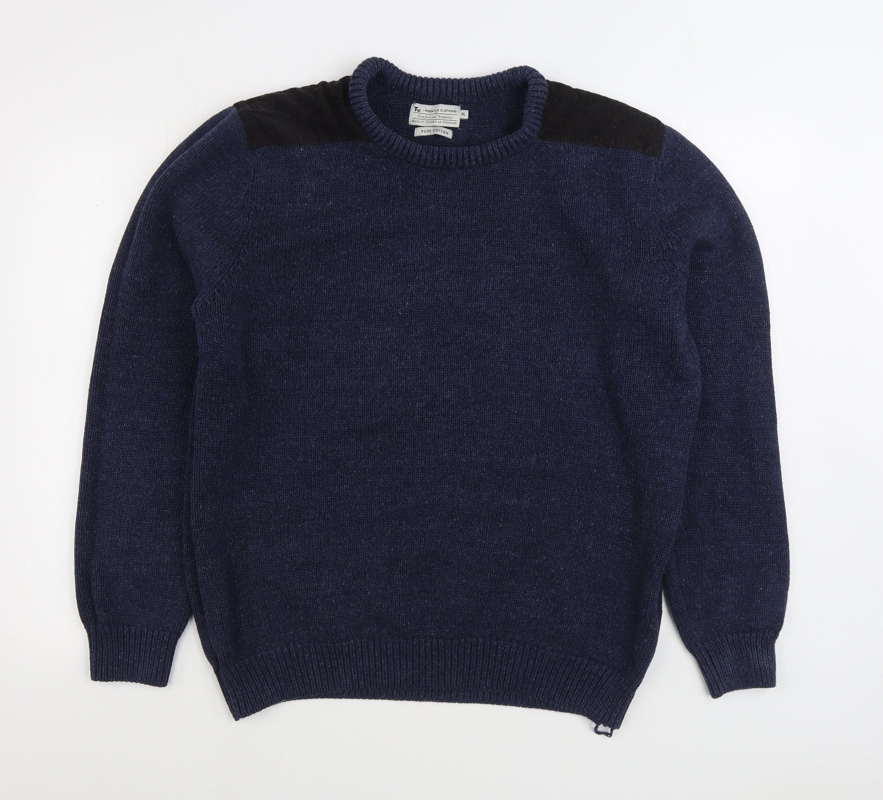 TU Womens Blue Round Neck 100% Cotton Pullover Jumper Size XL