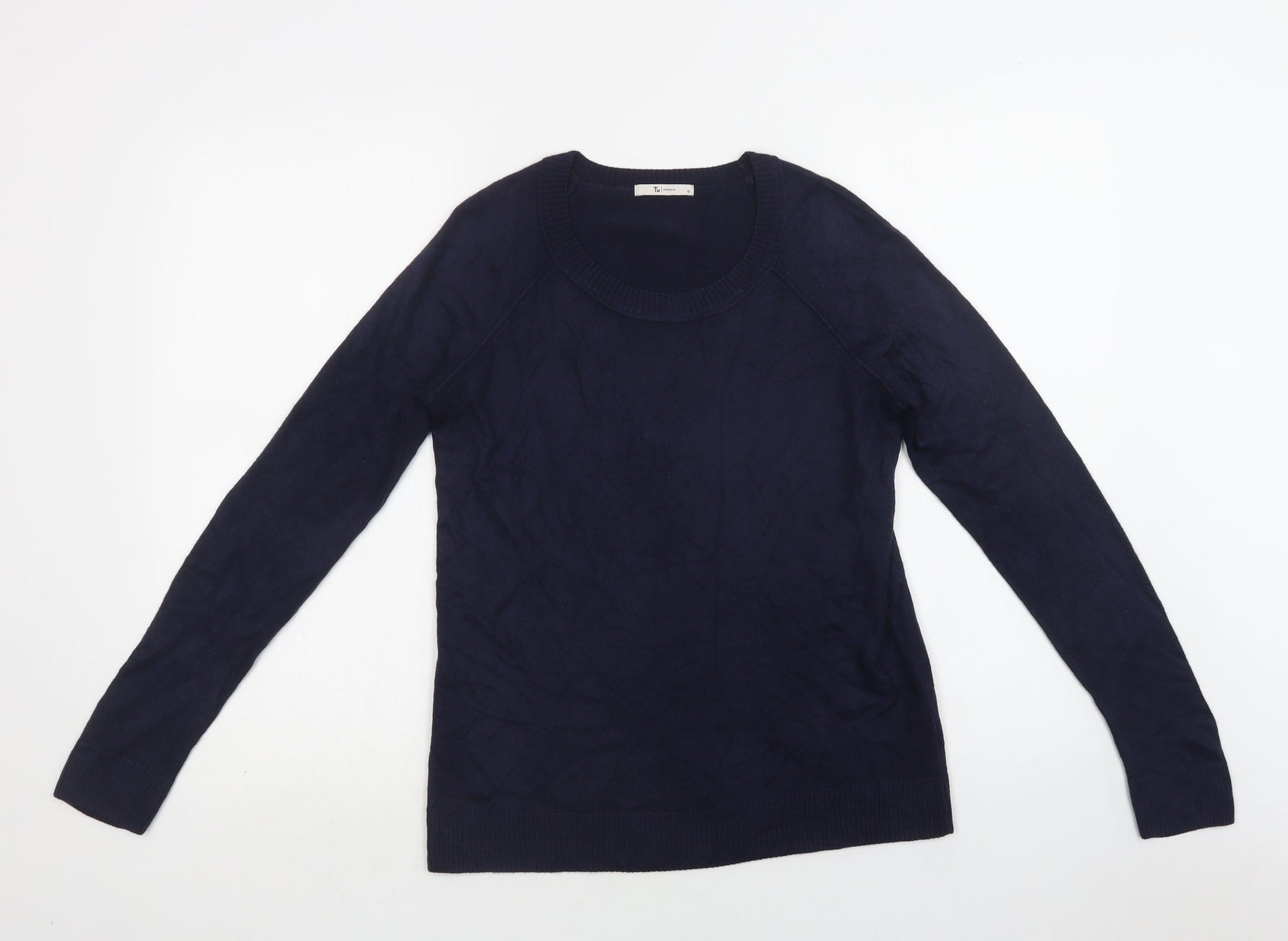 TU Womens Blue Round Neck Acrylic Pullover Jumper Size 10