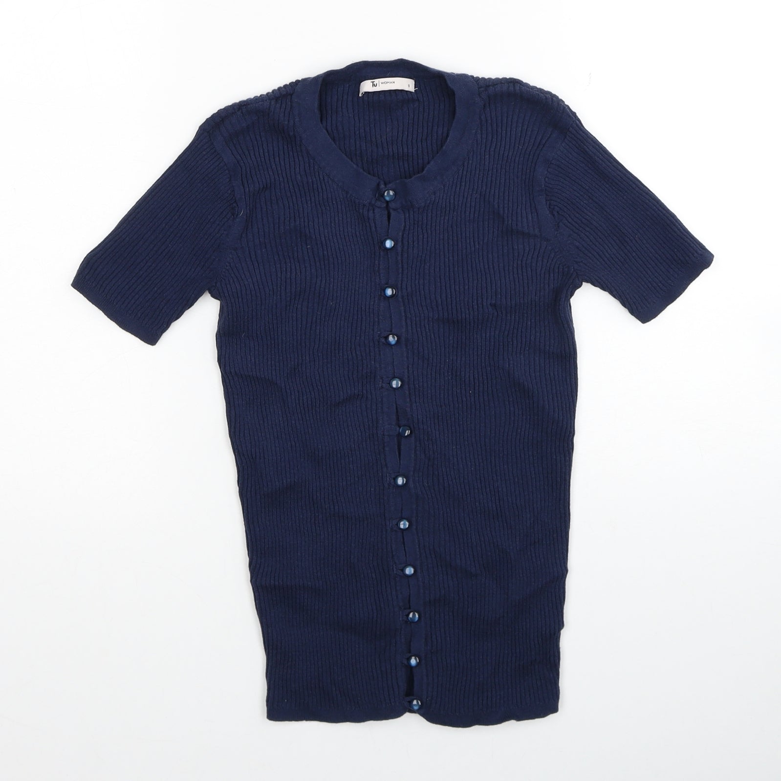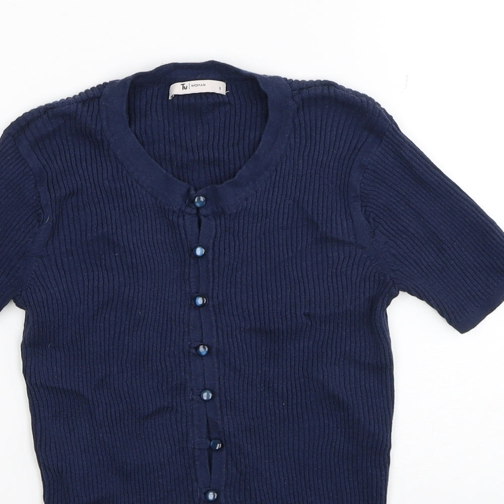 TU Womens Blue Round Neck Cotton Cardigan Jumper Size 8