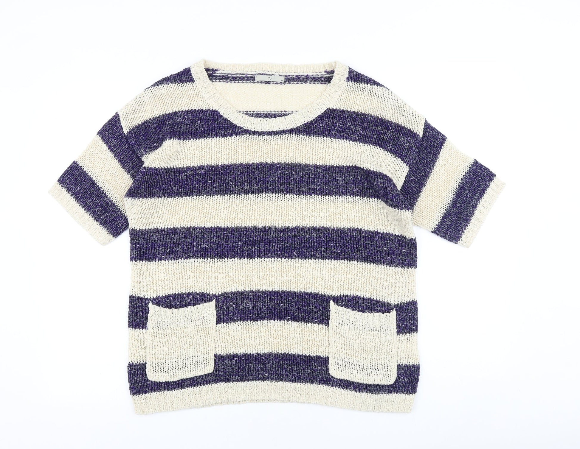 TU Womens Blue Round Neck Striped Acrylic Pullover Jumper Size 12