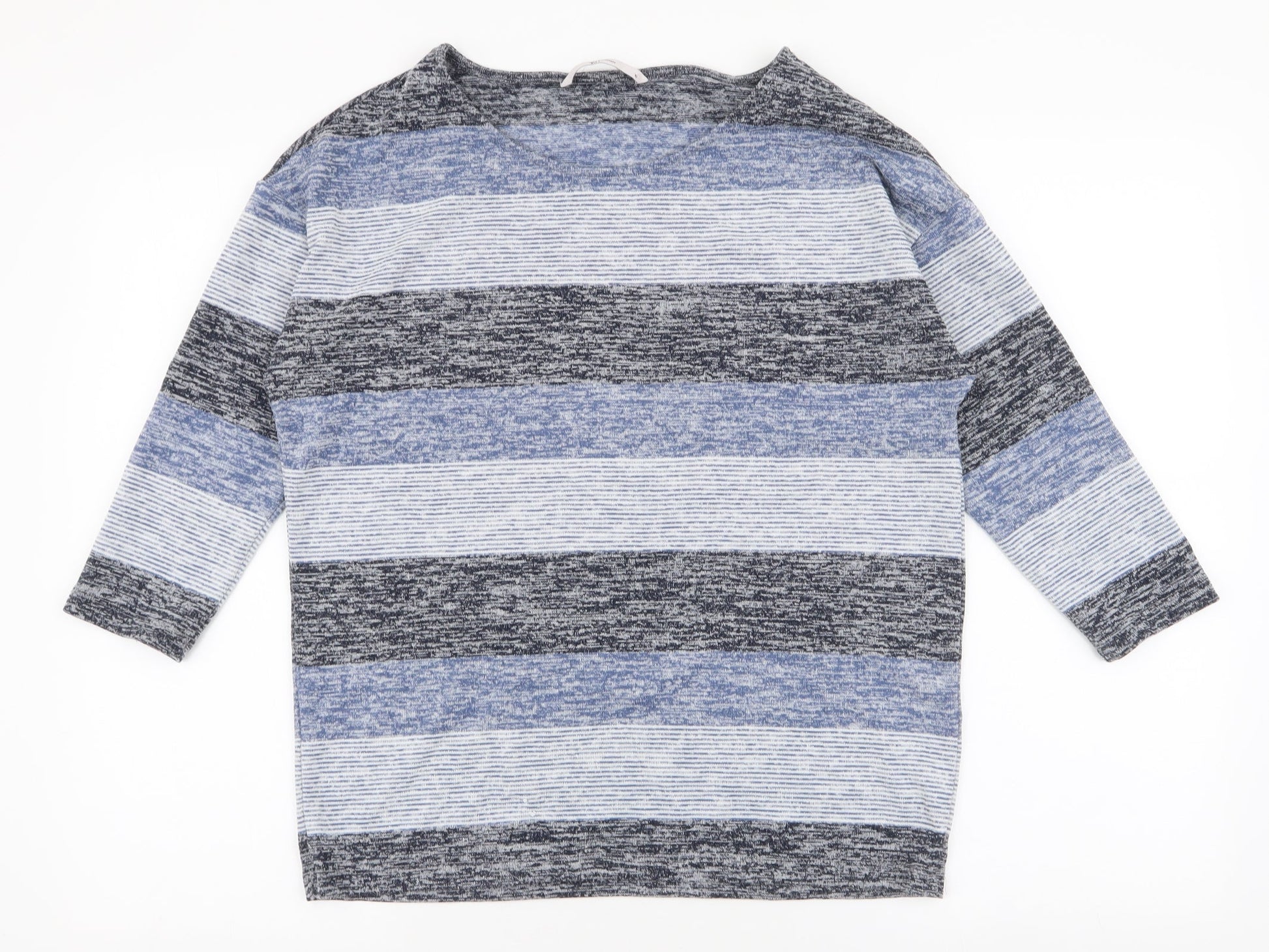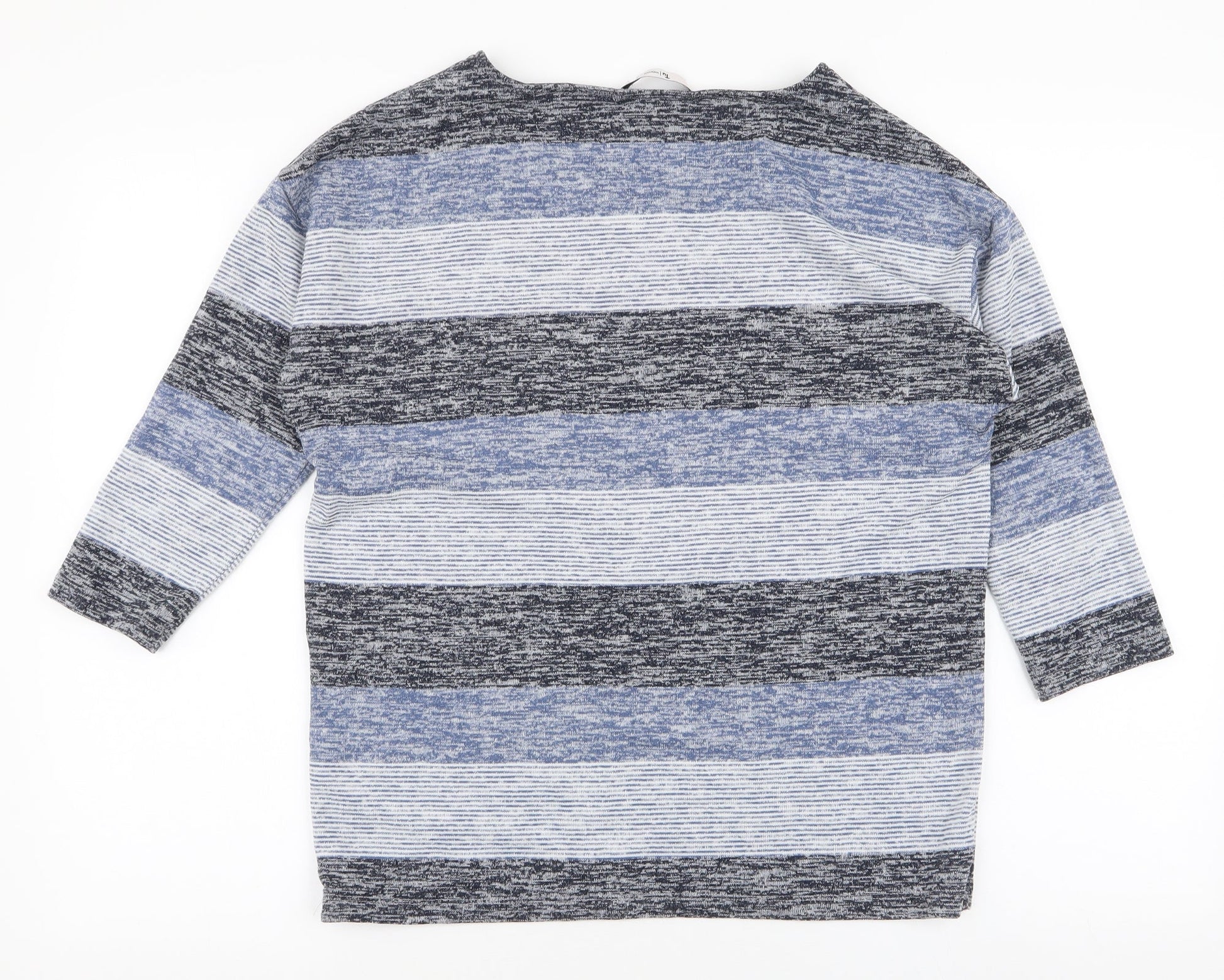 TU Womens Blue Round Neck Striped Polyester Pullover Jumper Size 10