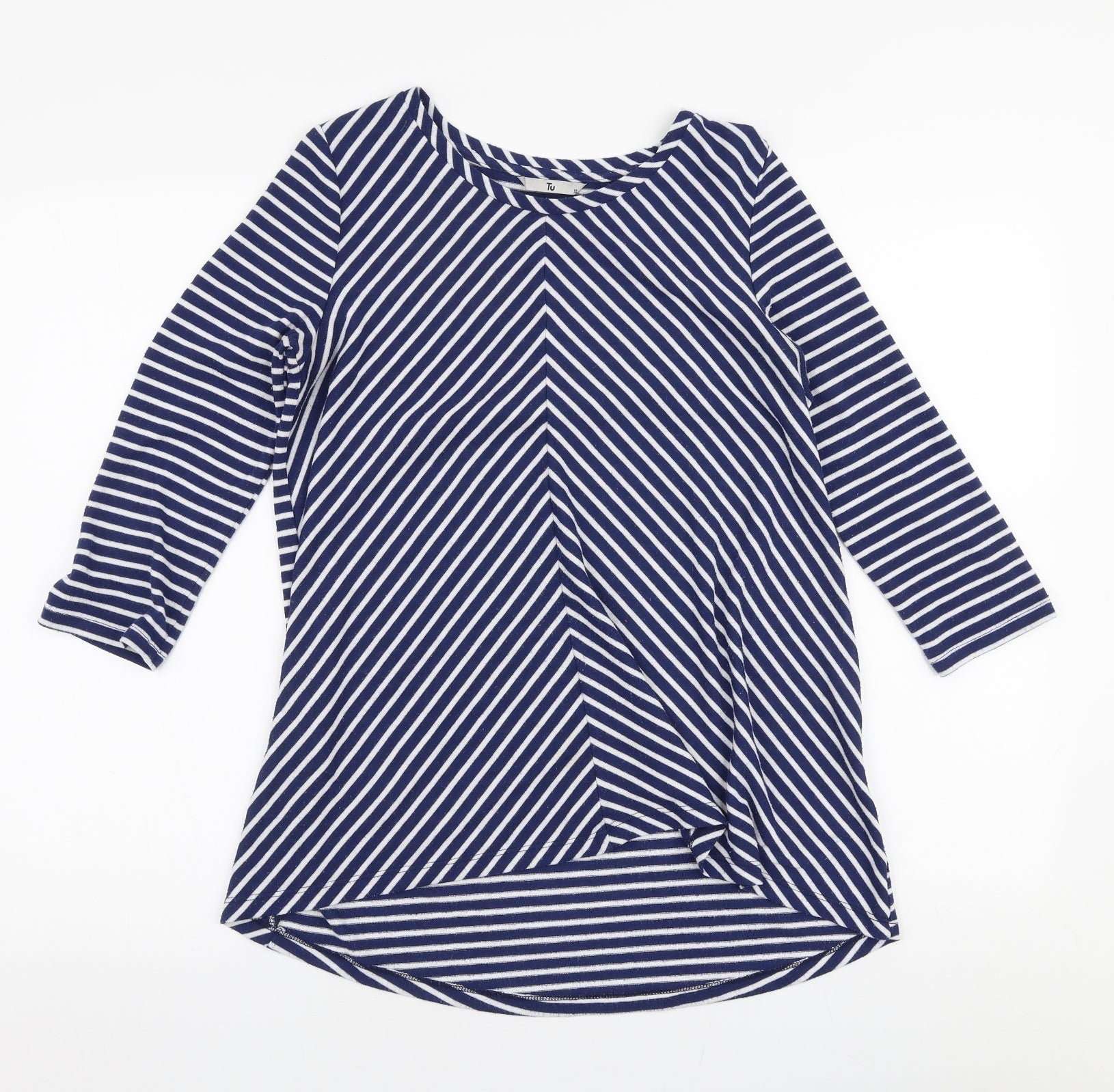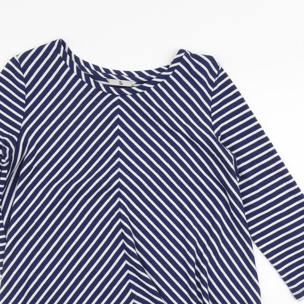 TU Womens Blue Round Neck Striped Polyester Pullover Jumper Size 10