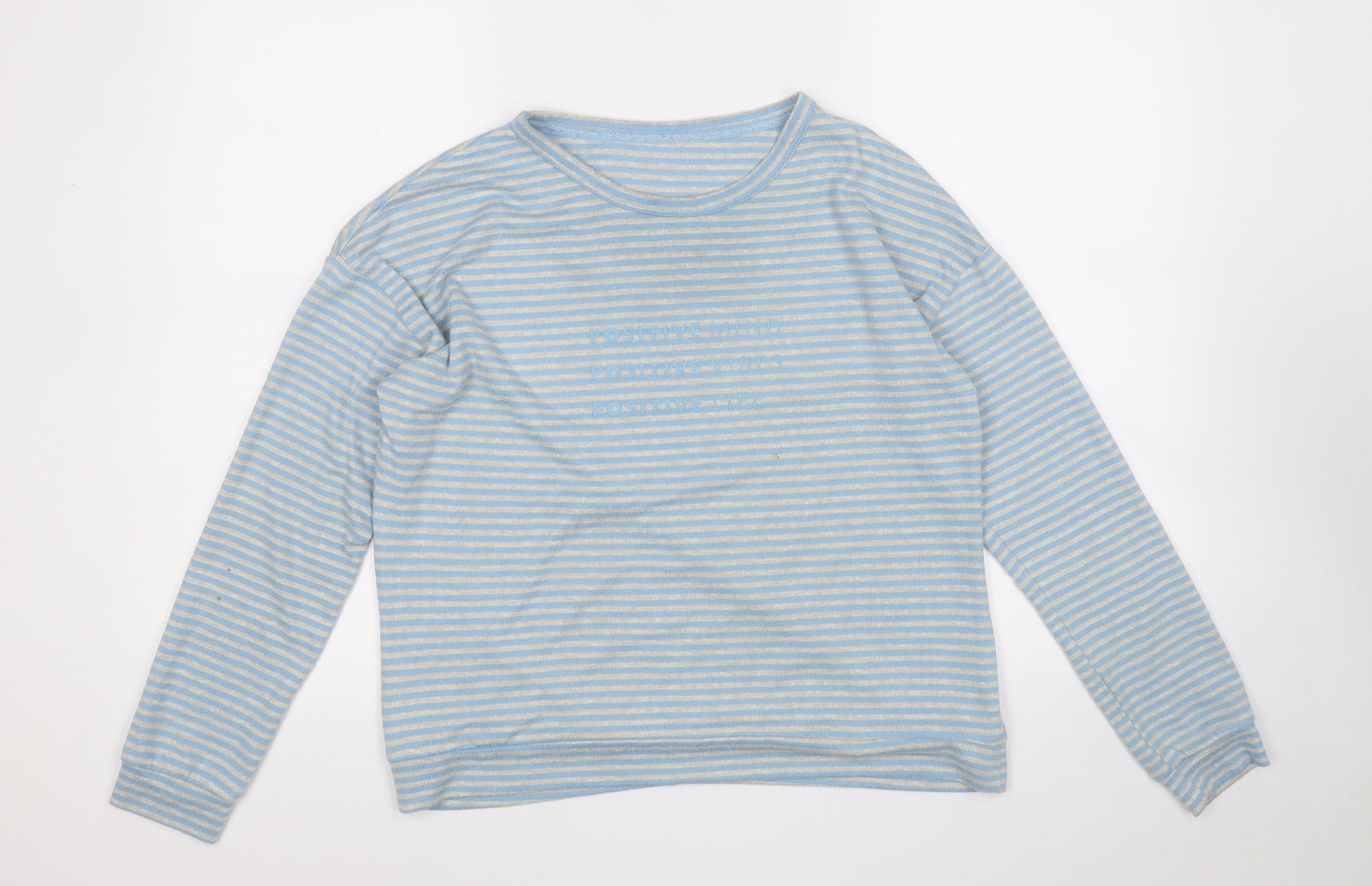 TU Womens Blue Round Neck Striped Polyester Pullover Jumper Size 10