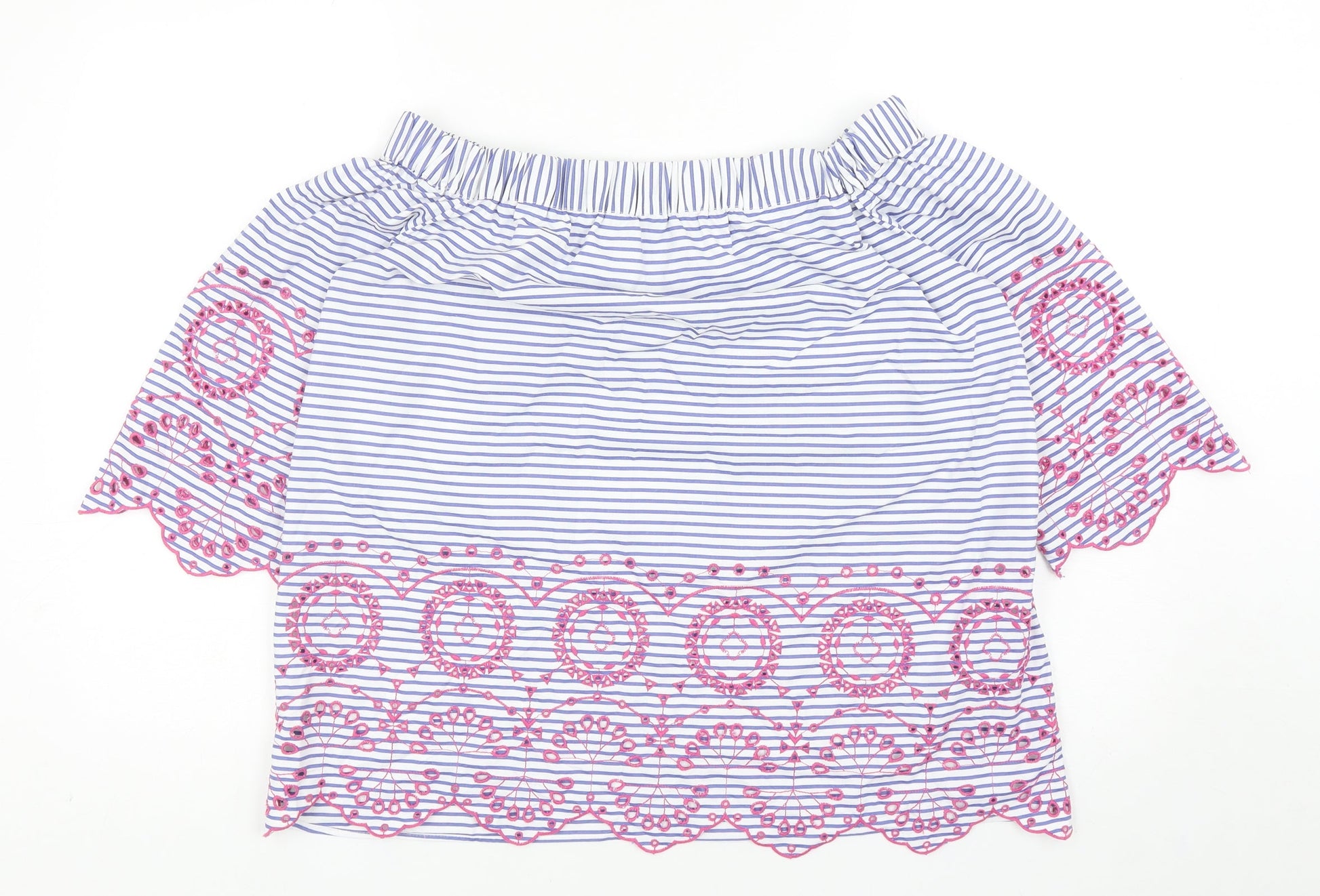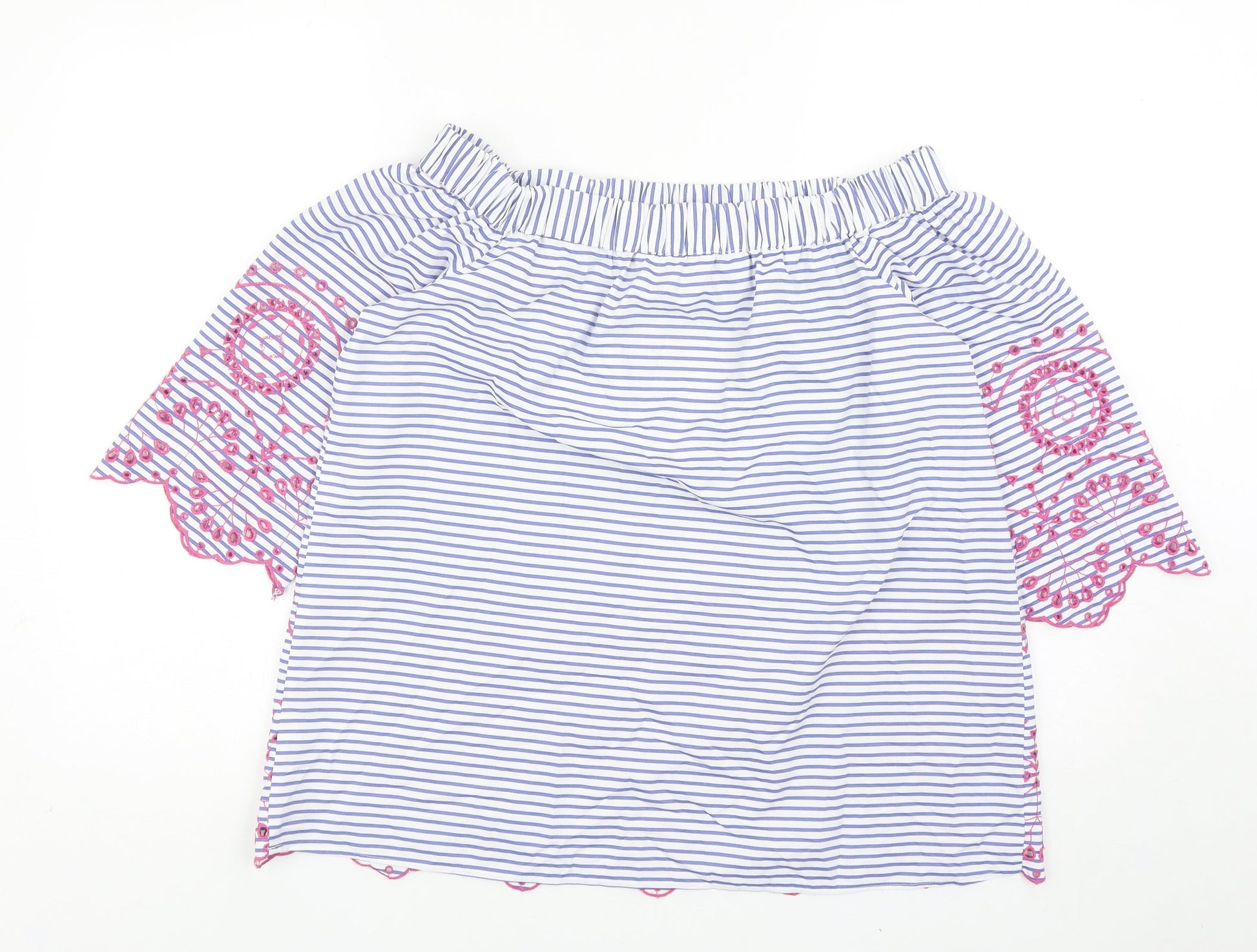 Tu Womens Blue Striped Cotton Basic Blouse Size 12 Off the Shoulder