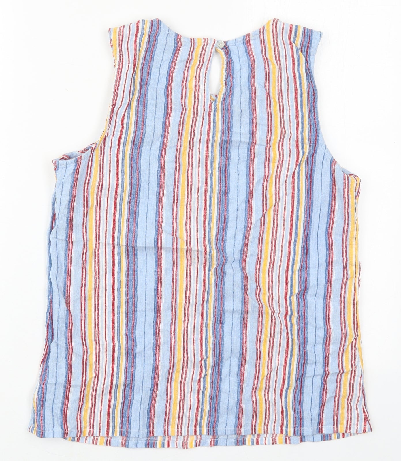 TU Womens Blue Striped Cotton Basic Tank Size 10 Round Neck
