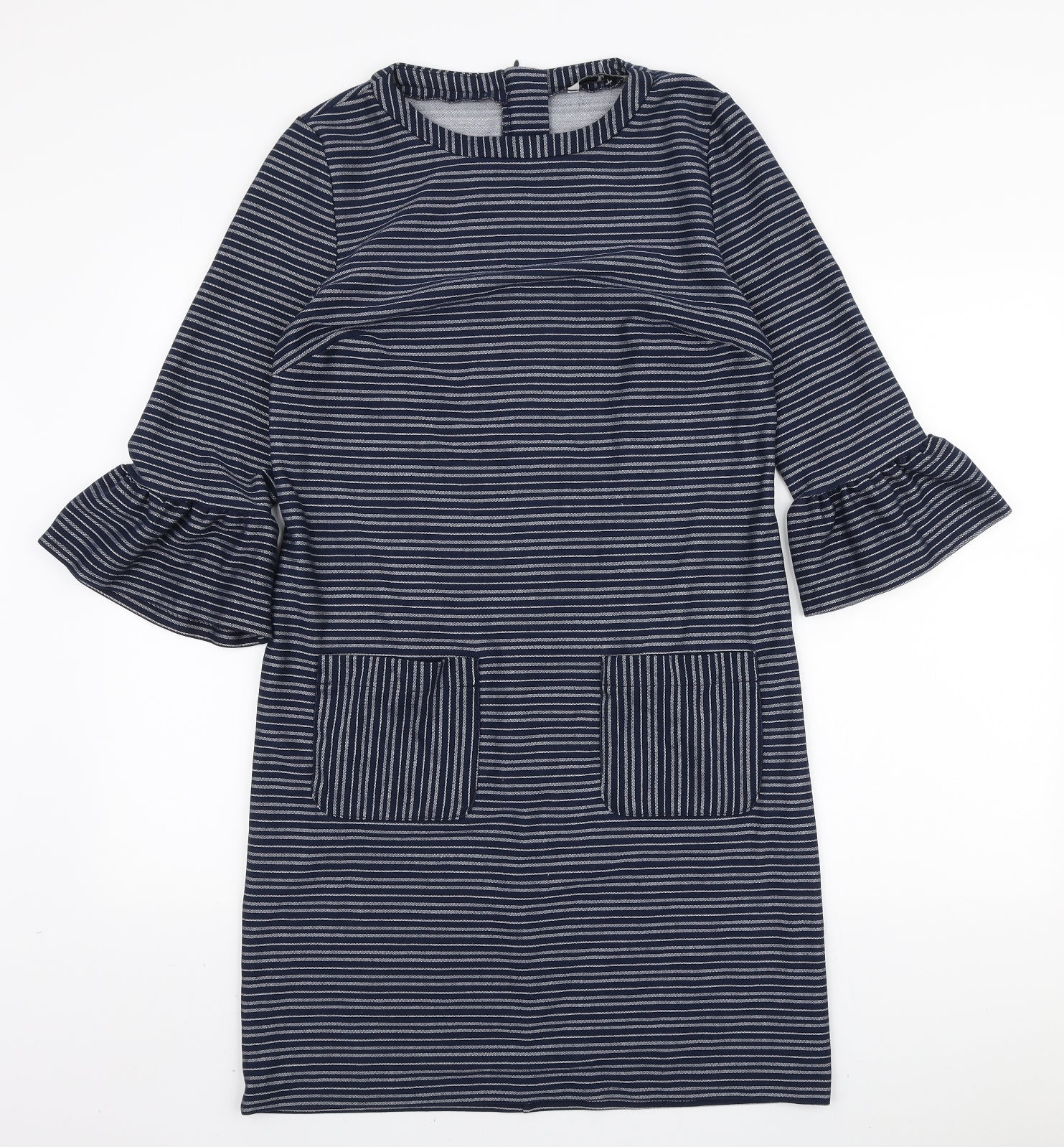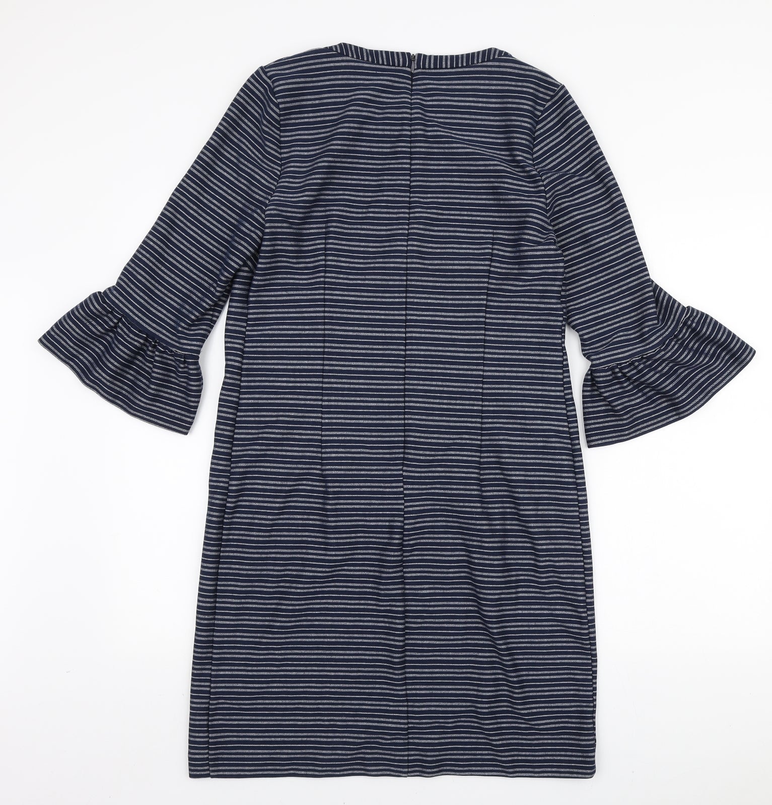 TU Womens Blue Striped Polyester A-Line Size 12 Round Neck Zip