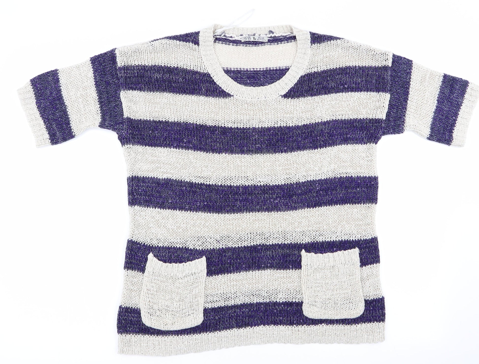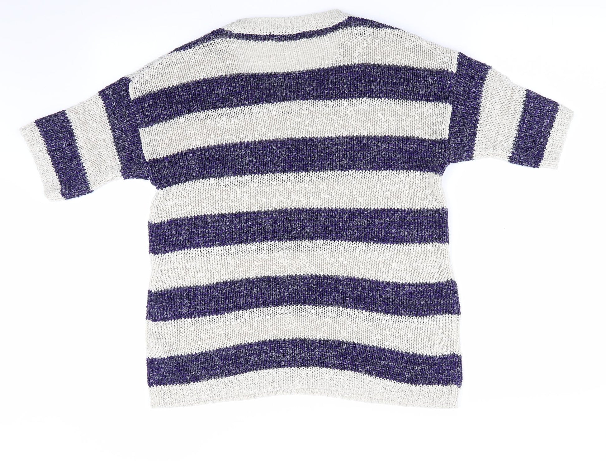 TU Womens Blue Striped Pullover Jumper Size 10 - Sequins all over
