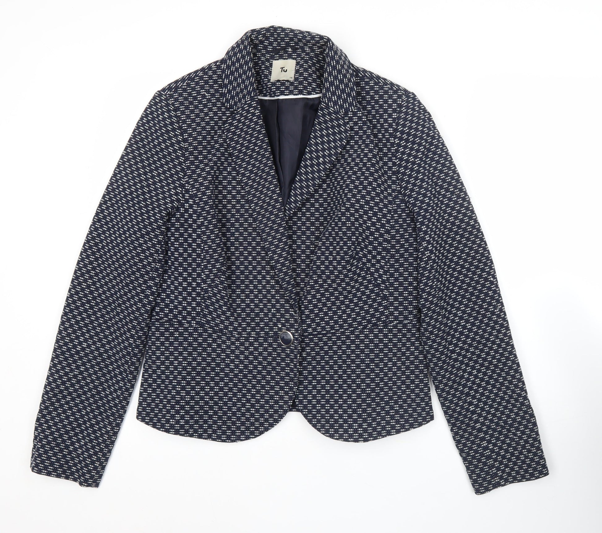 Tu Womens Blue Textured Blazer Size 14 Single Breasted Jacket