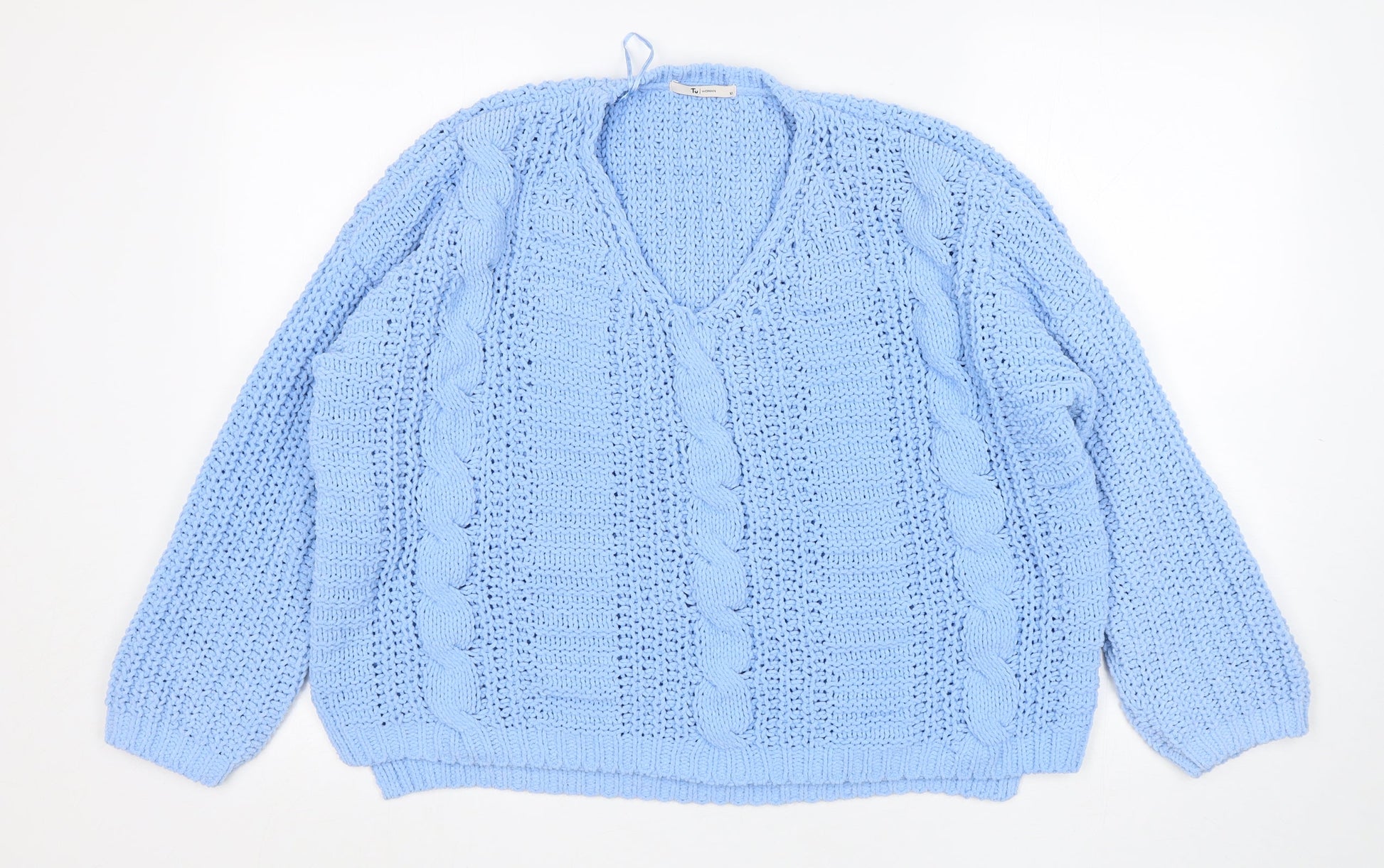 TU Womens Blue V-Neck Polyester Pullover Jumper Size 10